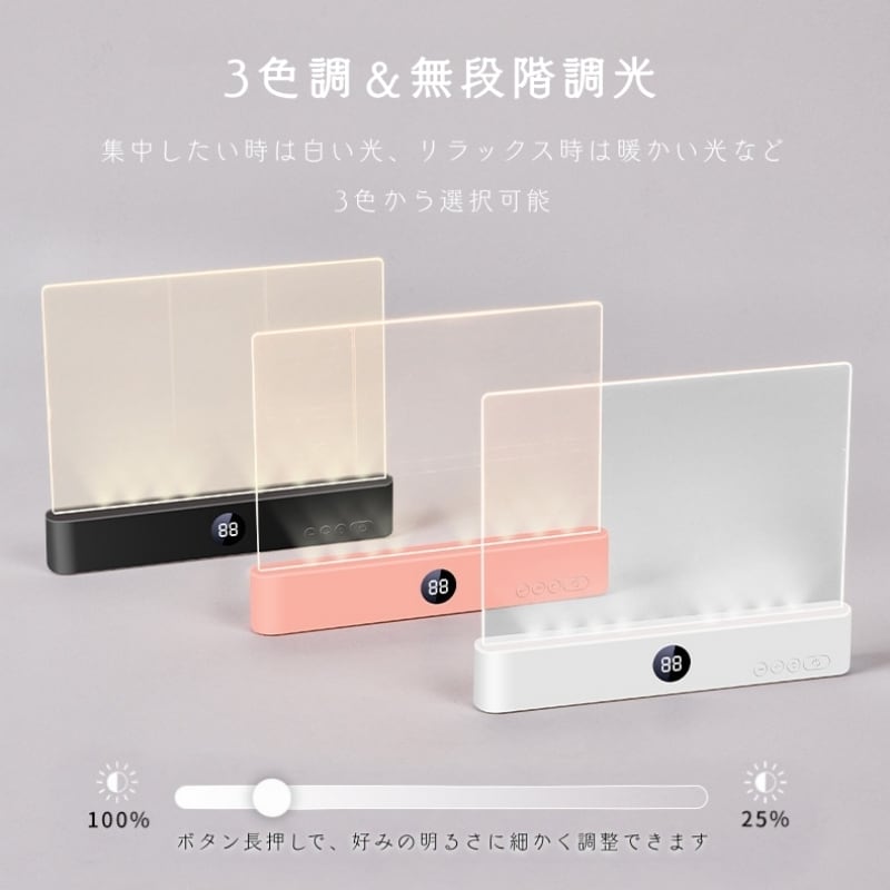 Y 145 . 1 LED ブックライト 2in1 デスクライト 1台2役 リチャージャブル 1200mAh 35時間 99分タイマー 無段階調光 タイマー機能 3色調 目に優しい ベッドサイドランプ ピンク ホワイト ブラック | COCOFID