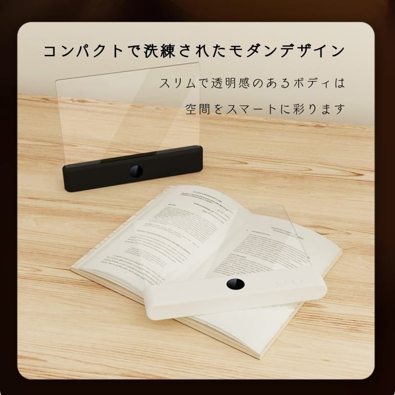 高品質PC素材を使用した透明パネルは、傷に強く、光を柔らかく拡散。クリアでムラのない光が、長時間の読書や作業でも目の疲れを軽減します。