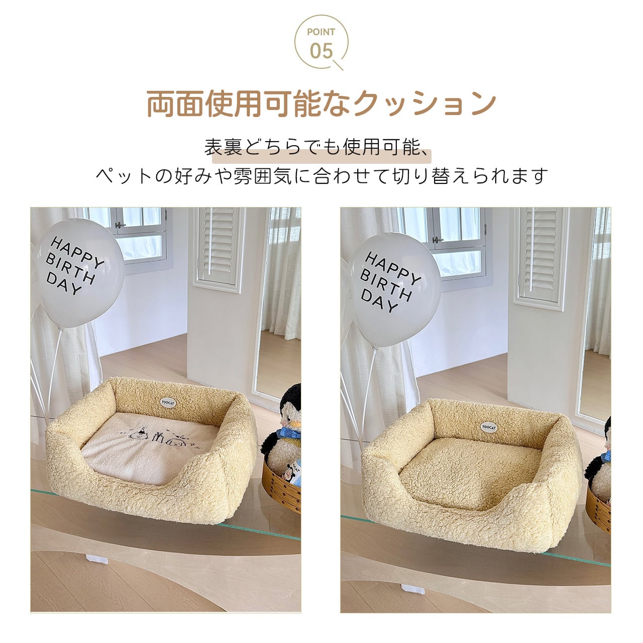 2. 汚れや尿がついた場合、クッションのカバーを取り外し、手洗いまたはソフトモードで洗濯機洗いが可能です