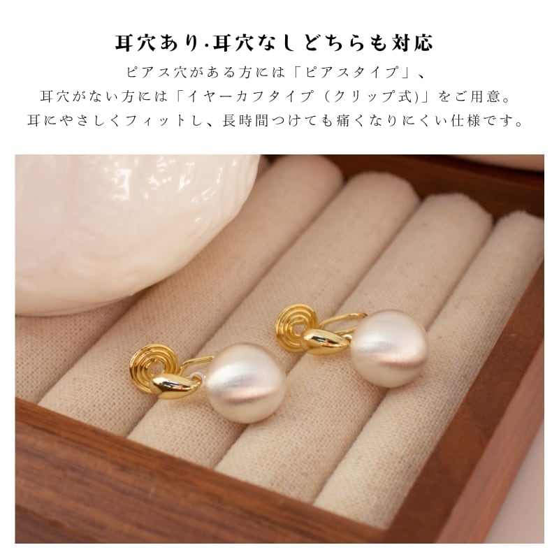 パールのような柔らかな光沢が、耳元をエレガントに演出します。