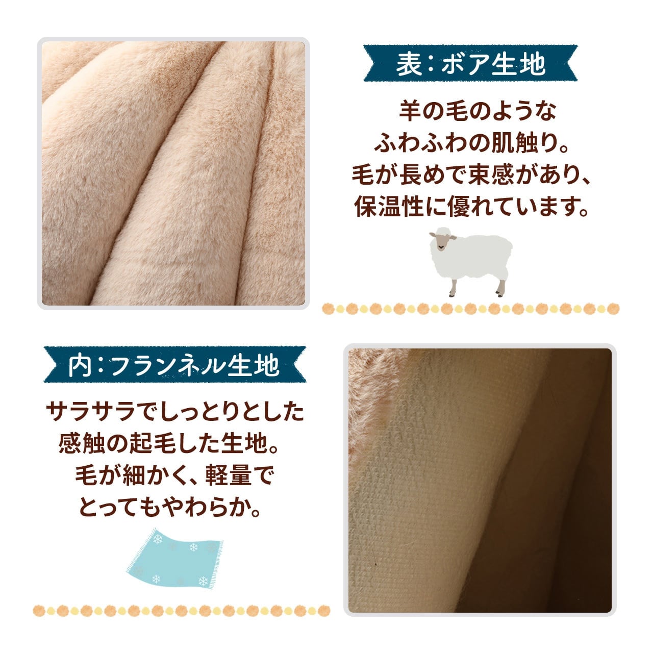 → 冬はふわもこ面で保温、春秋はリネン風面で通気。一つで二役、無駄がありません。