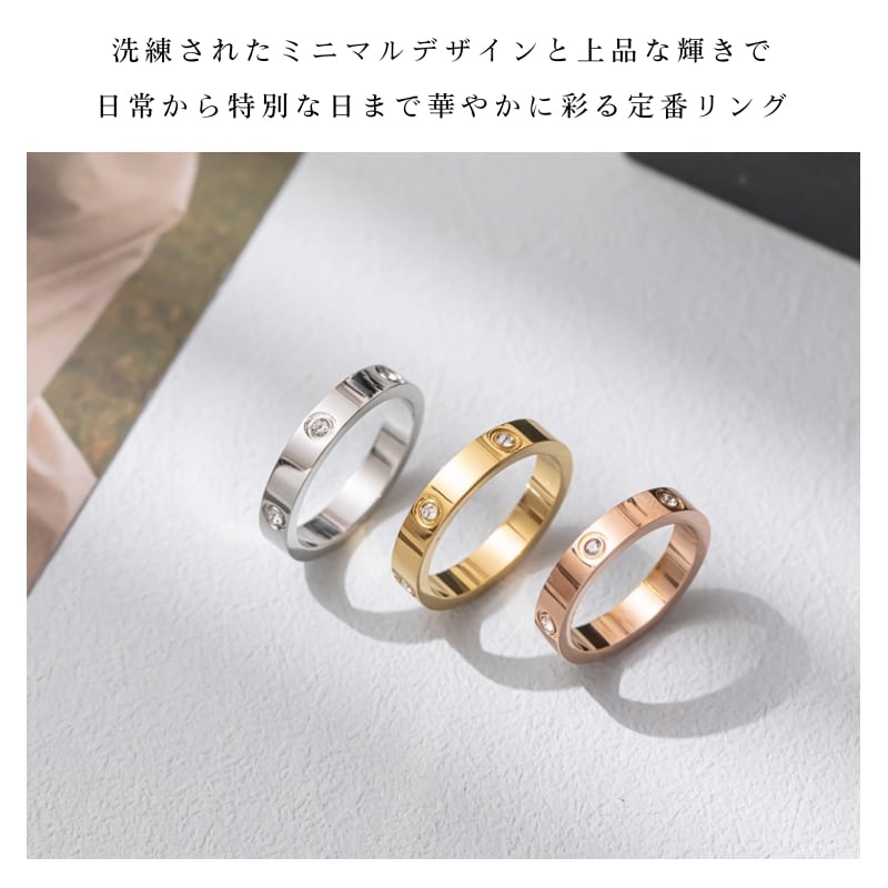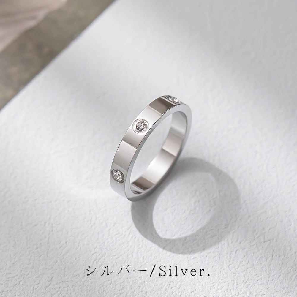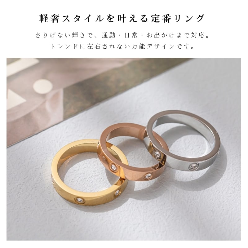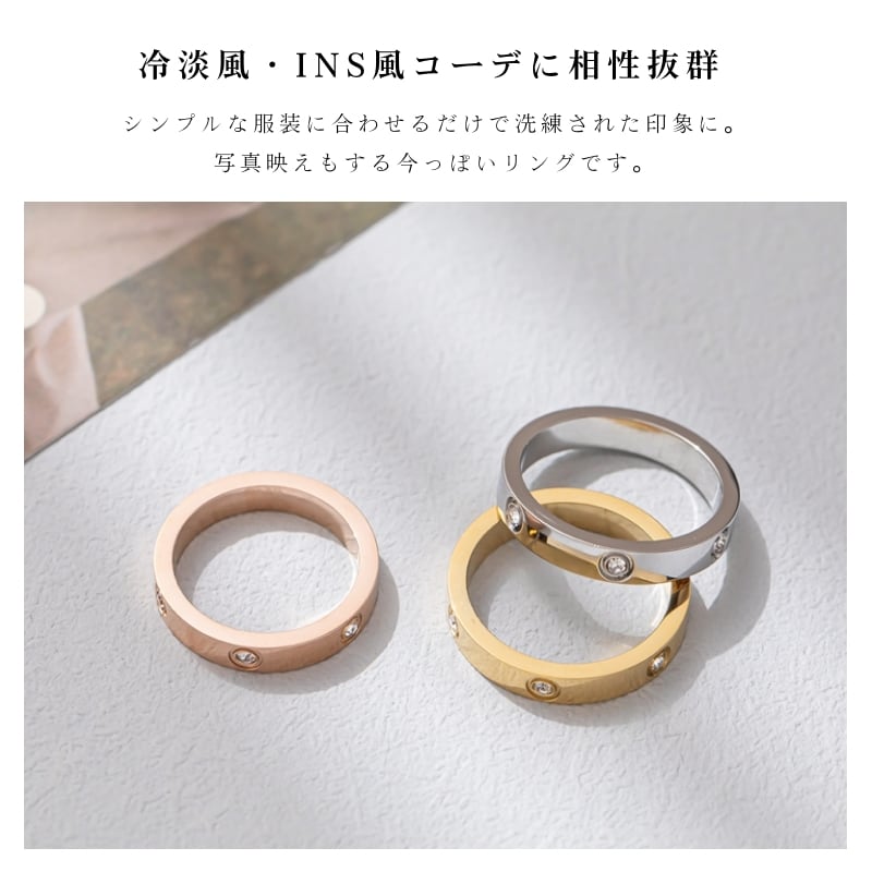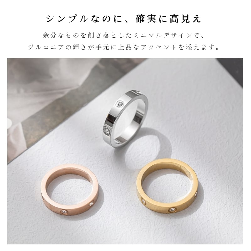 シンプルなリング表面に、ジルコニアを等間隔で配置。