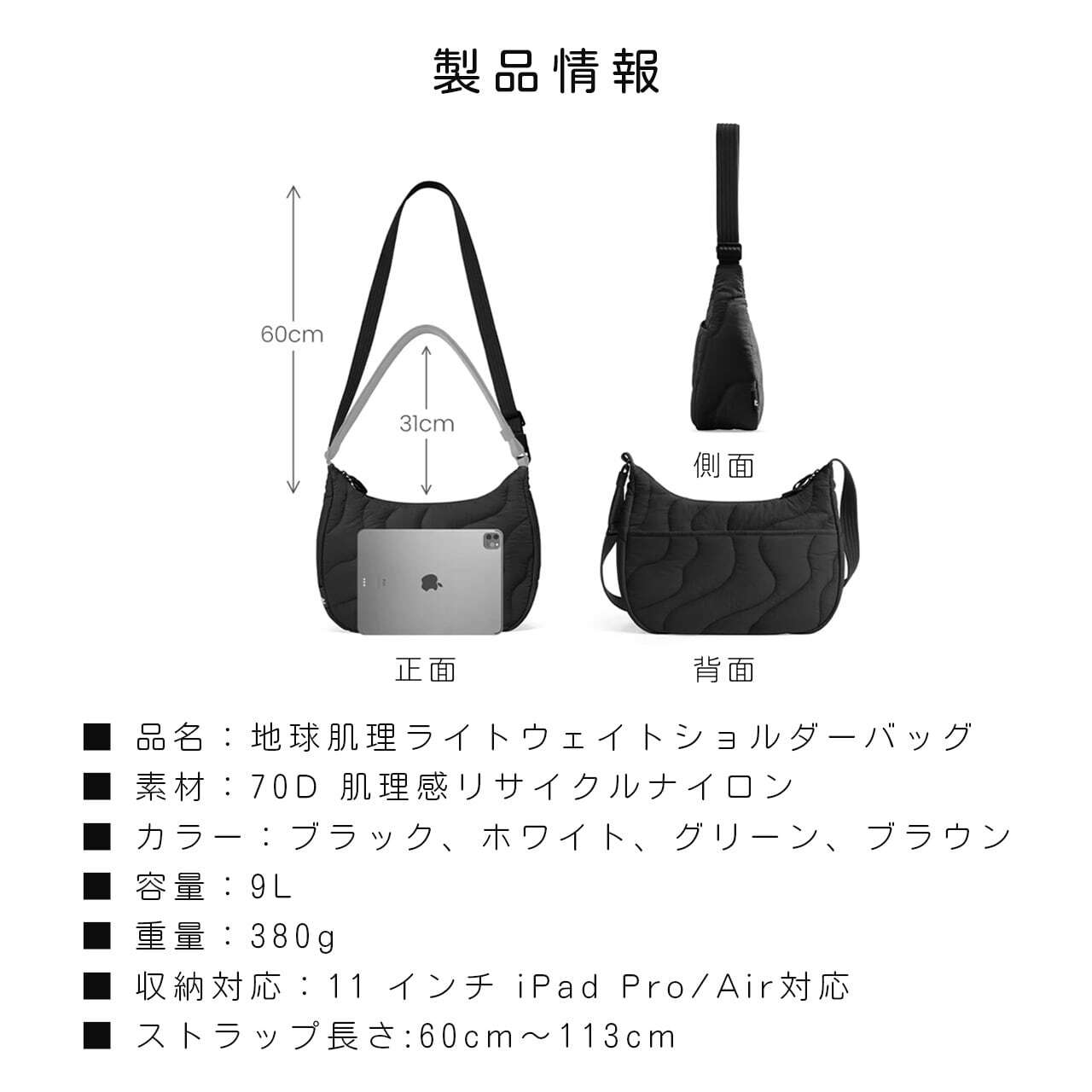 ストラップ長さ:60cm〜113cm(調節可能)