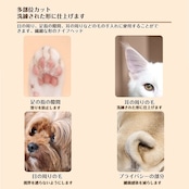 準備:ペットが落ち着いている状態で、対象部位の毛を軽くブラッシング
