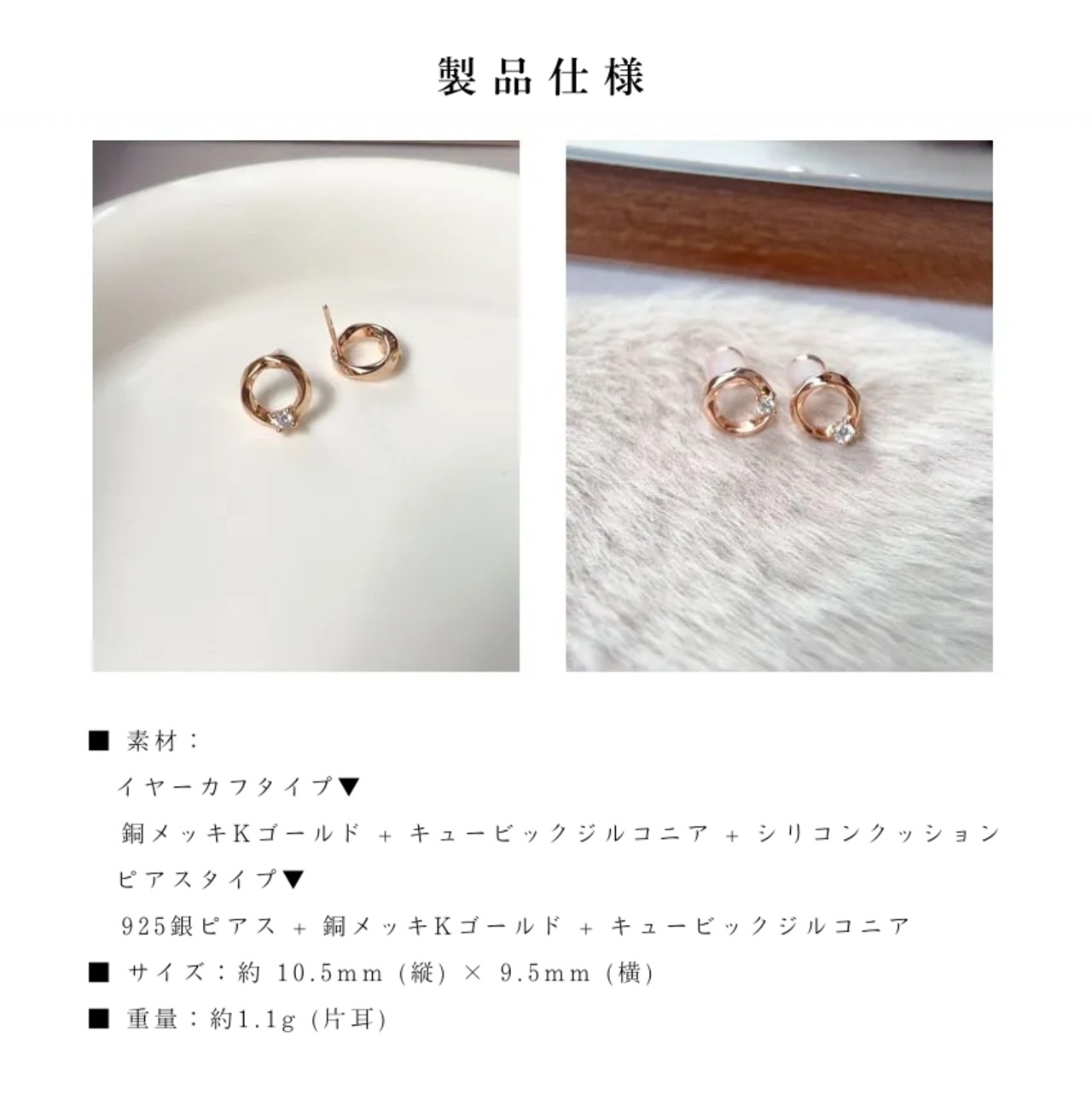 ピアスタイプ:925銀ピアス + 銅メッキKゴールド + キュービックジルコニア