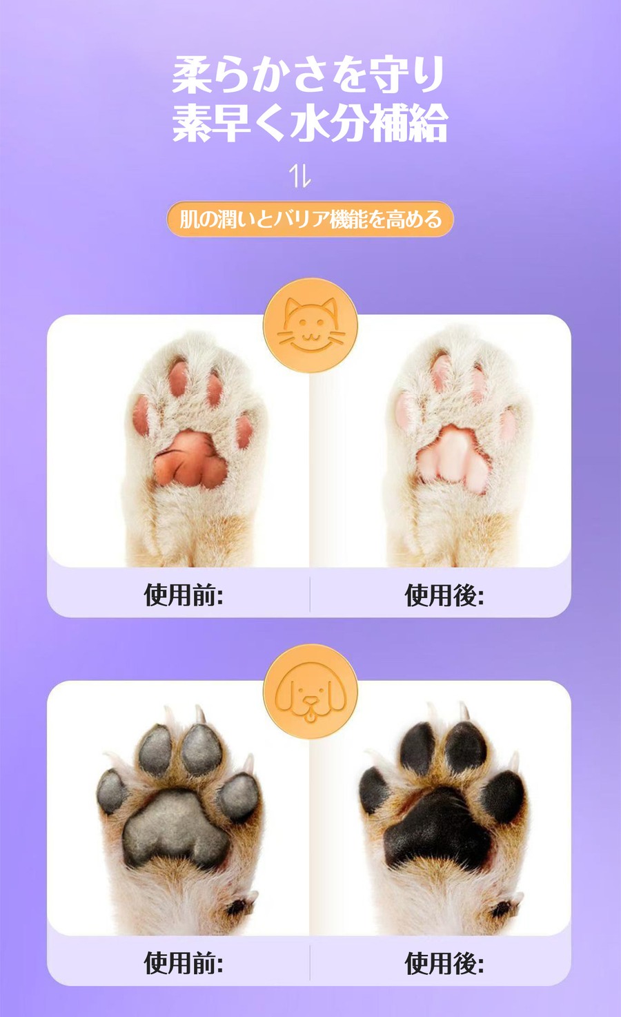 ■ 主要な効果:ペットの足爪や鼻のケアに使用し、潤いを保ち、肌の水分を維持し、効果的に抗菌し、ベットのデリケ-トな肌を優しく守ります