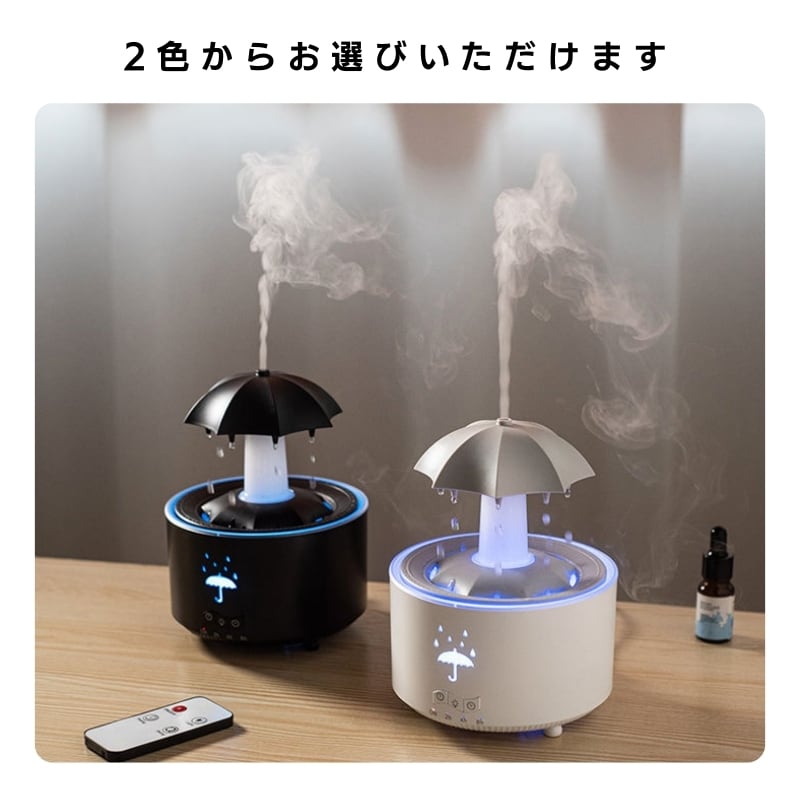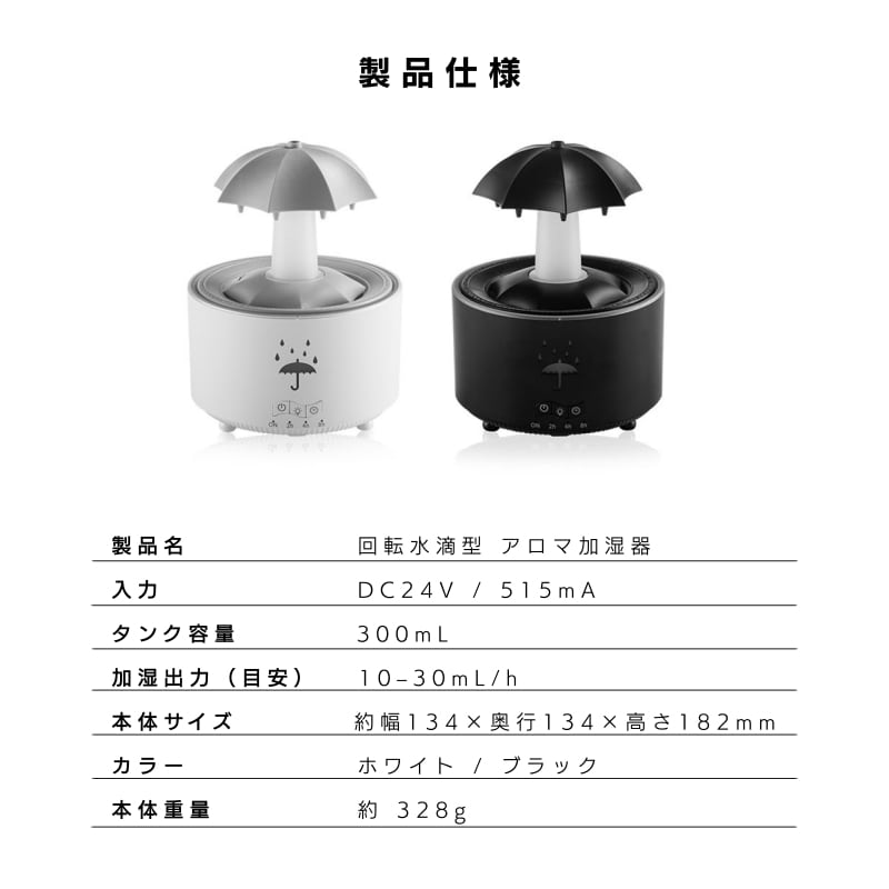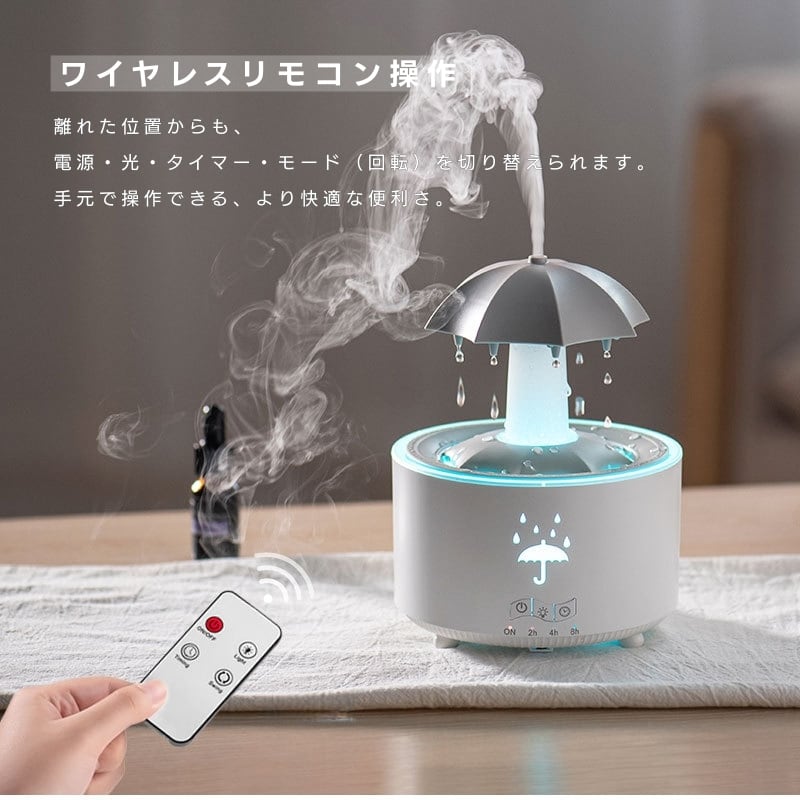 Y 191 . 回転する水滴型 アロマ加湿器 7色LED タイマー リモコン ベッドルーム オフィス 静音 広口タンク 300ml アロマディフューザー 霧量調整 空焚き防止 ホワイト ブラック | COCOFID