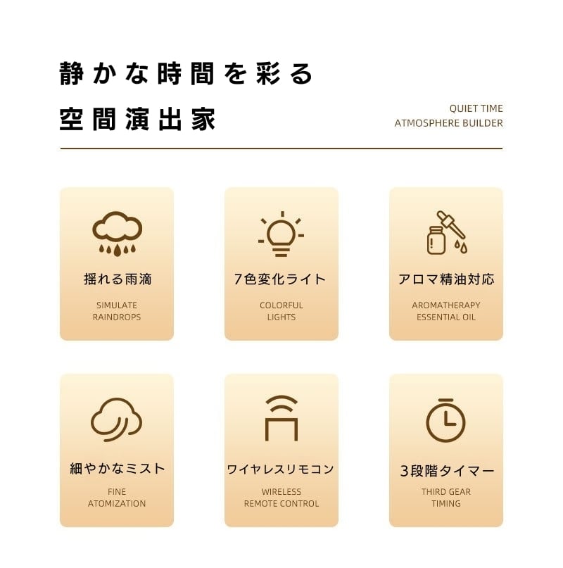 💧 揺らめく水滴が生み出す、香りと光のリラクゼーション空間