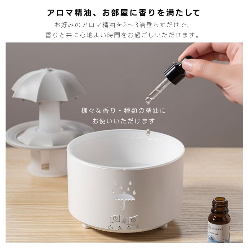 ⚠ 精油は水溶性のもの(アロマ用精油)をご使用ください。油性のものや香料オイルは故障の原因となります。