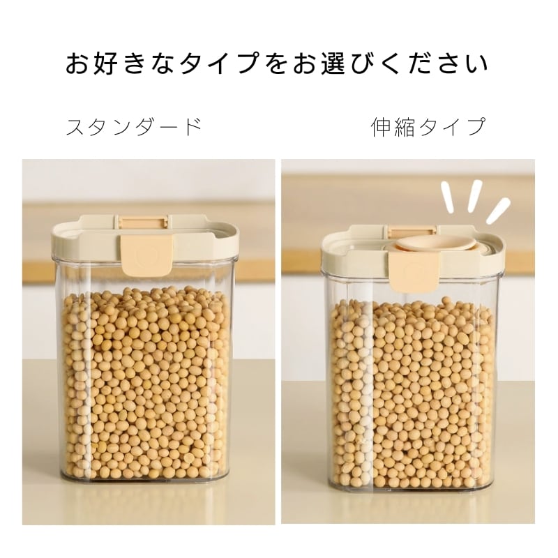 湿気に敏感な食材にはシリコンロック式(柔軟なシリコンがぴったり密封)、毎日使うものにはプレス式(ワンタッチでパチンと閉鎖)。用途と好みで選べます。