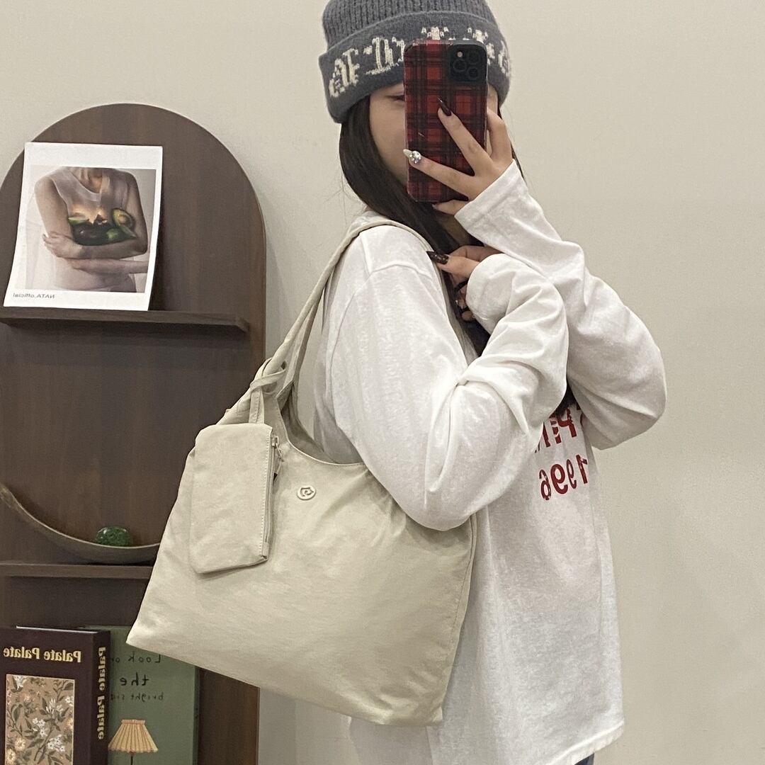 Y 205 . ハンドバッグ レディース トートバッグ 手提げ 軽量 オールシーズン ナイロン 大容量 多機能 ショルダーバッグ 4色展開 (ベージュ/ブラウン/ブラック/パープル) | COCOFID