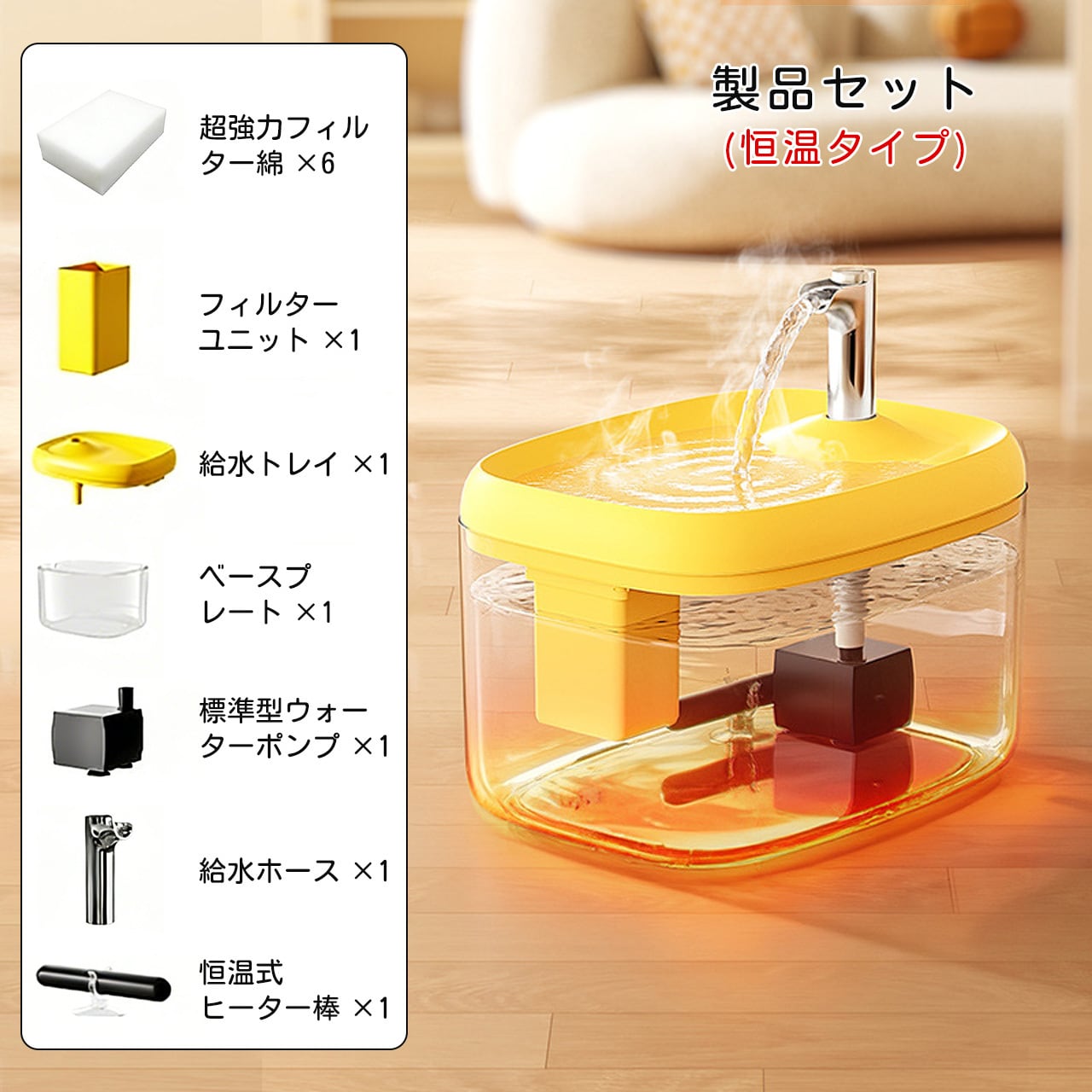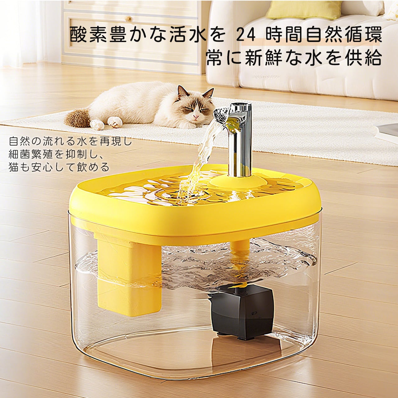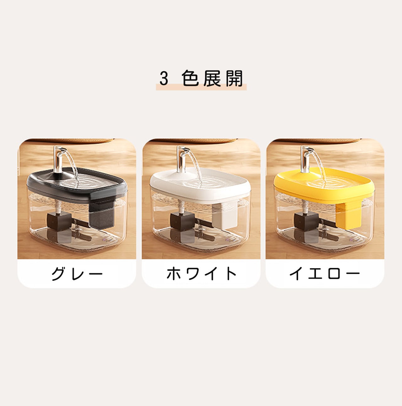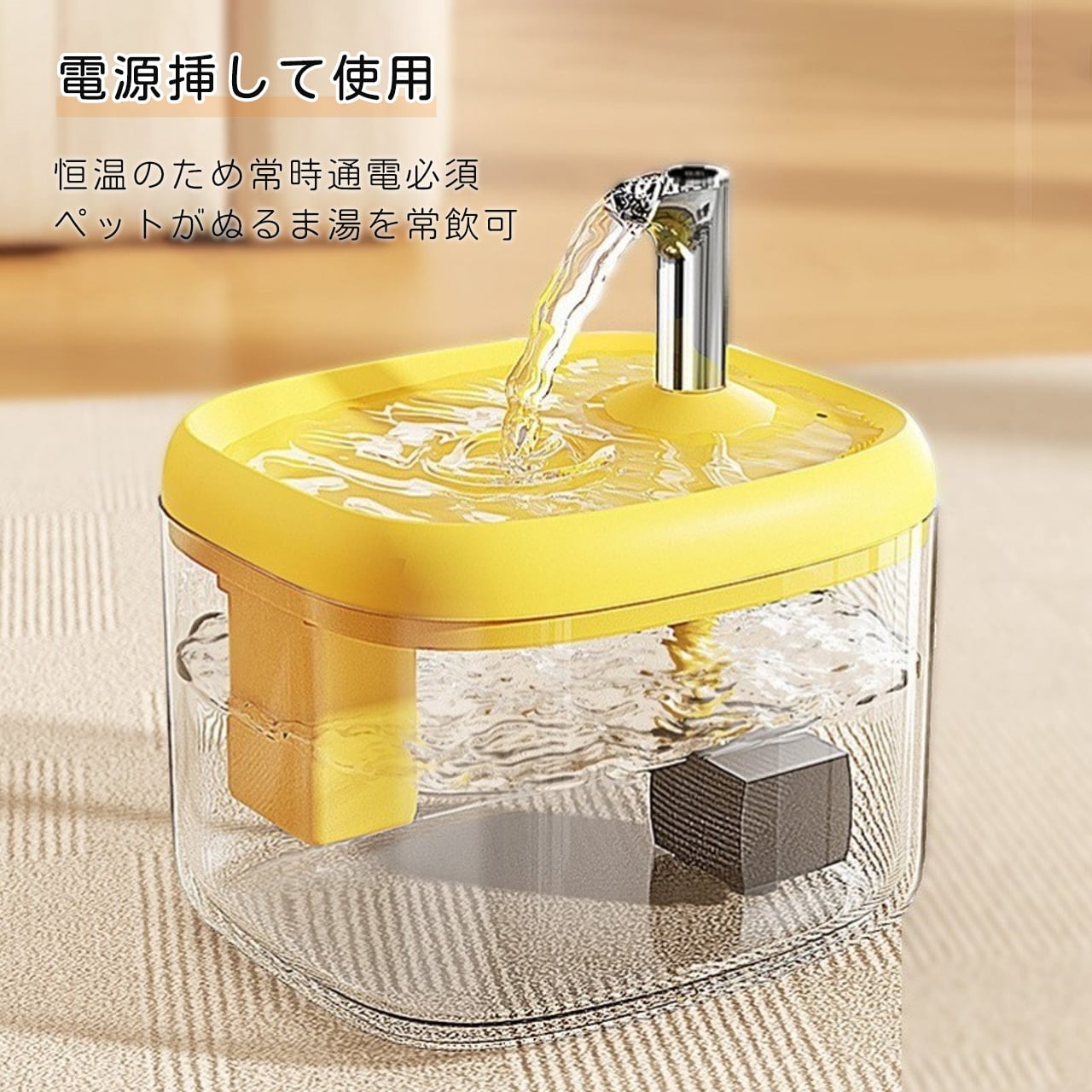 1. 本製品はすべて電源接続が必要で、常に接続していただくことで温水を持続させ、ペットがいつでもお水を飲めるようになっています。
