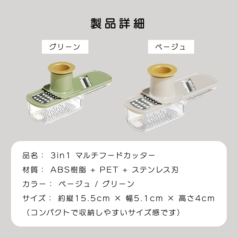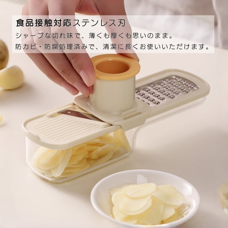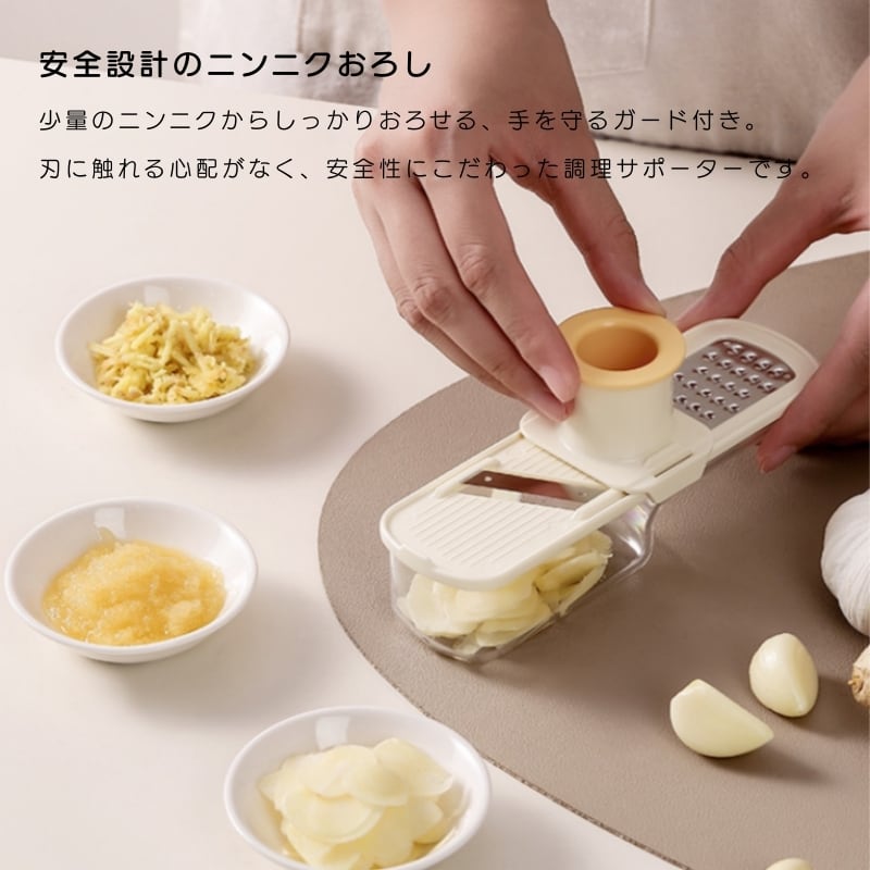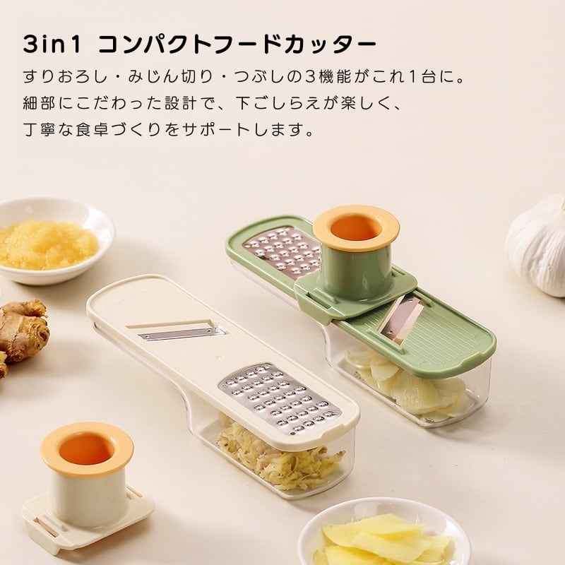 Y 221 . 3in1 マルチフードカッター 2点セット ミニ コンパクト キッチン スライサー ステンレス刃 安全設計 ハンドガード付き 生姜おろし ニンニクみじん切り 家庭用 調理サポーター | COCOFID