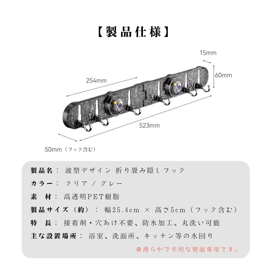 「波型折り畳み隠しフック」は、水のさざ波をモチーフにした、見た目にも機能性にもこだわった新感覚収納アイテムです。