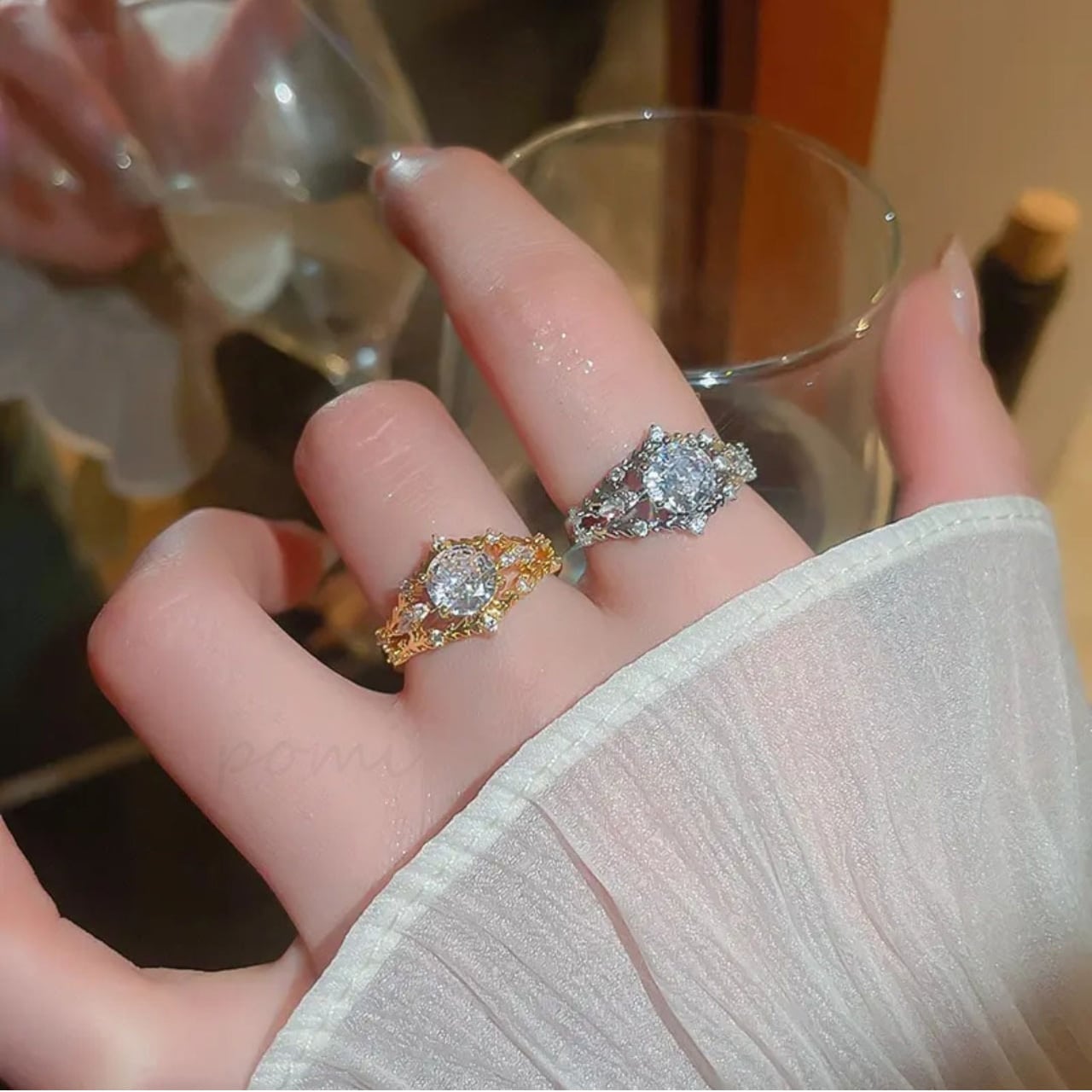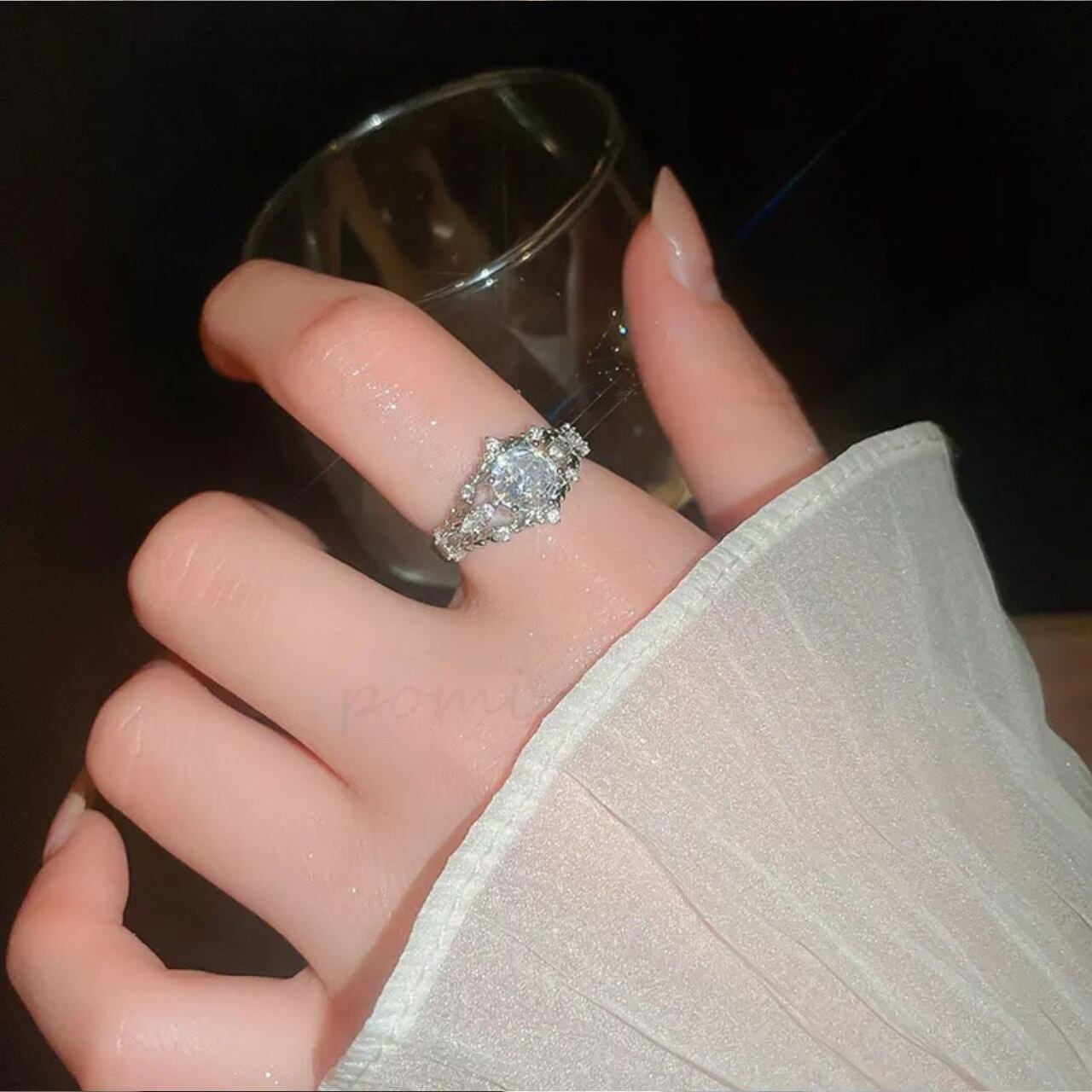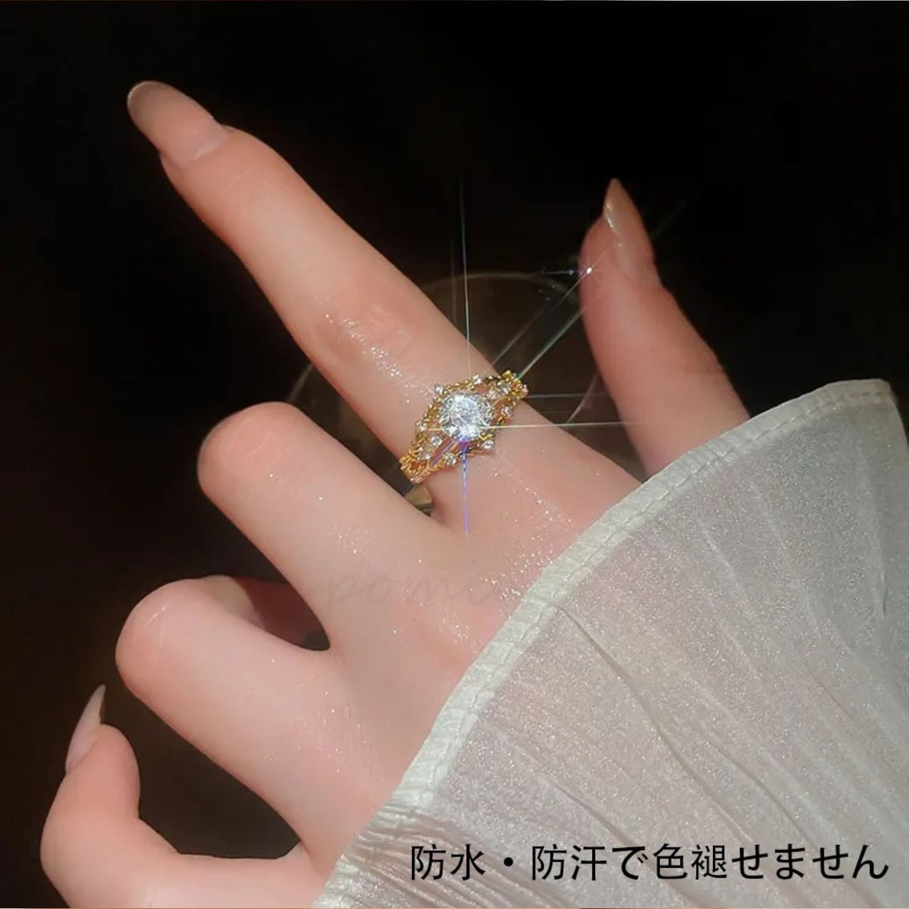 高い透明度と屈折率を持つ高品質ジルコンを採用。太陽の光の下でも、室内の優しい照明の下でも、あらゆる光を捉えてキラめき、あなたの手元を上品に照らします。