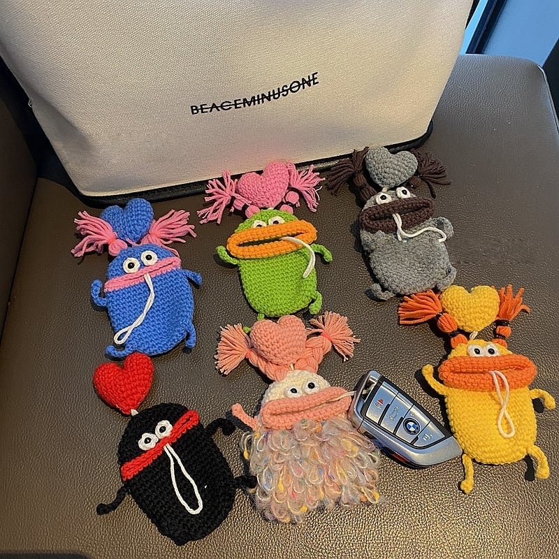 Y 228 . 【手作業による製作】手編み キーケース ソーセージ唇 ブサかわ 毛糸 かぎ針編み 車 キーケース 保護カバー 引っ張り式 保護 プレゼント ハンドメイド 可愛い ユニーク ギフト | COCOFID