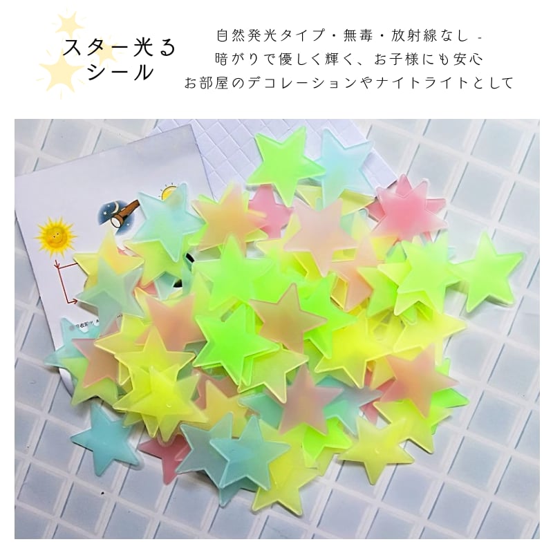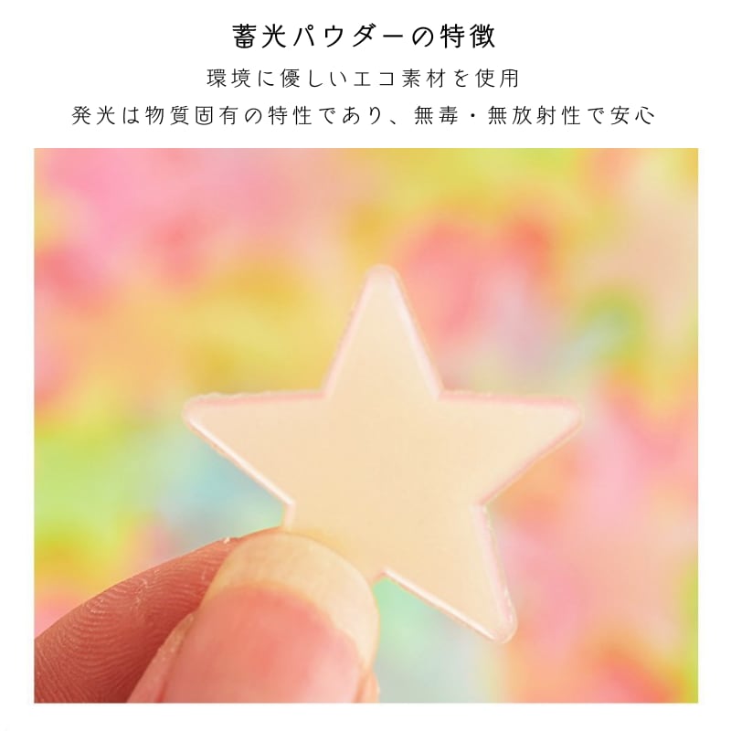 無毒・無放射性の蓄光パウダーを使用しているため、お子様の寝室や幼稚園・保育園の装飾にも安心してお使いいただけます。