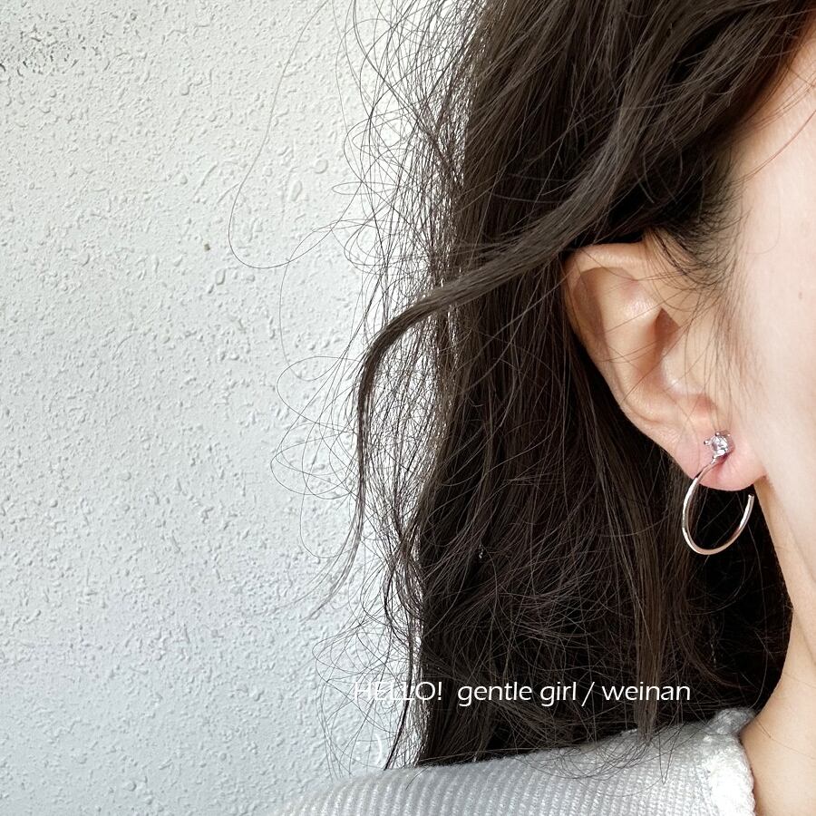 主張しすぎない約2cmのサイズ感と、どんな顔の形やヘアスタイルにも合うCシルエット。カジュアルからオフィスカジュアルまで、シーンを選ばず自然にコーディネートに溶け込みます。