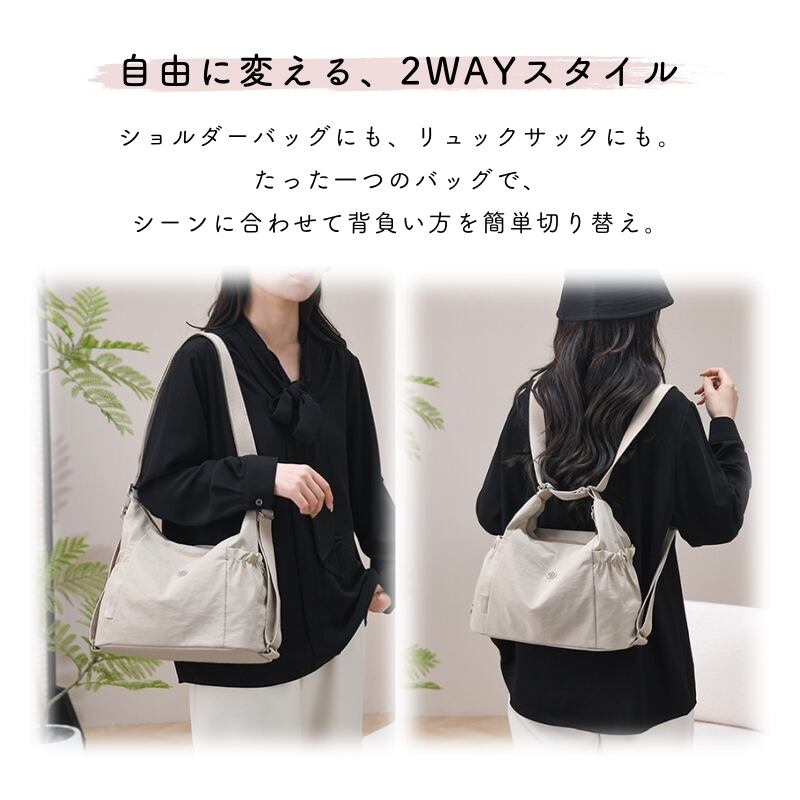 Y 234 . 多機能 大容量 ショルダーバッグ レディース リュック 2WAY 撥水 軽量 旅行 通勤 日常 ブラック パープル ブラウン ベージュ カーキ 2026 新作 斜めがけ 多背法 軽い | COCOFID