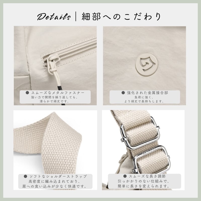 ⚠ 金属部分(金具・ファスナー)は、汗や水分により稀に変色する可能性があります。使用後は柔らかい布で軽く拭くことをお勧めします。
