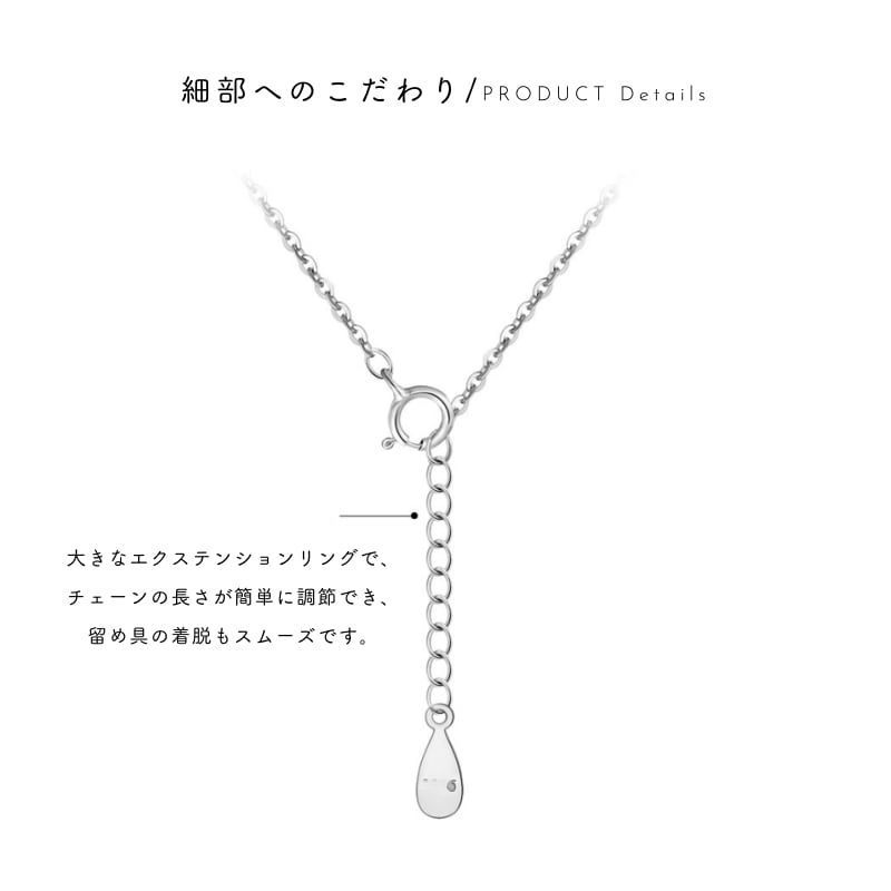 大きなエクステンションリングを採用しているため、チェーンの長さ調節が簡単。留め具の着脱もスムーズで、毎日の装着がストレスありません。