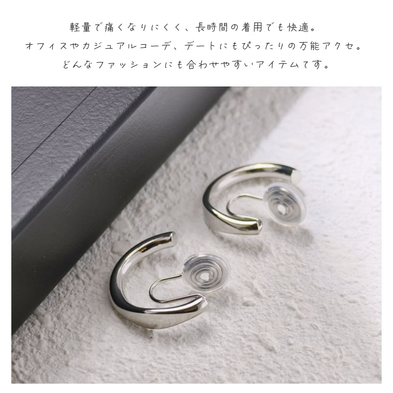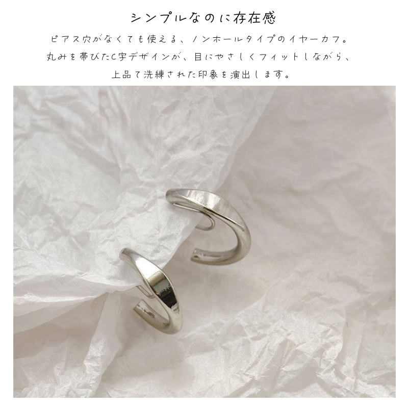 Y 237 . シンプル Cカフ イヤーカフ ノンホール ピアス不要 痛くない 軽量 シルバー レディース オフィス カジュアル 普段使い 上品 高見え 2026 新作 イヤリング イヤージュエリー プレゼント | COCOFID