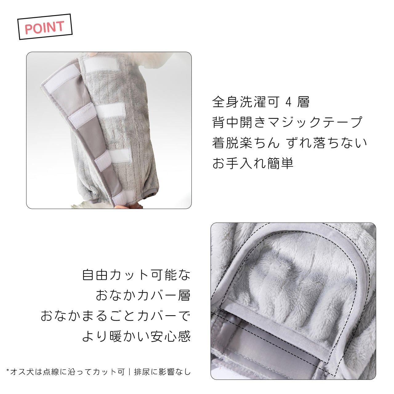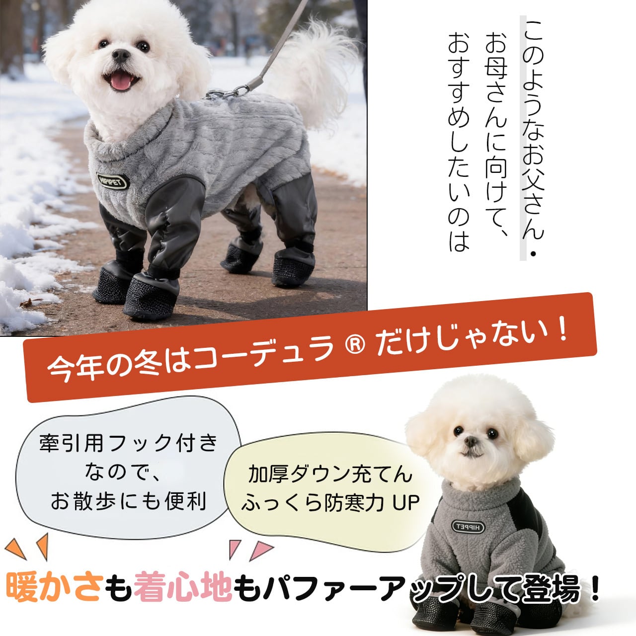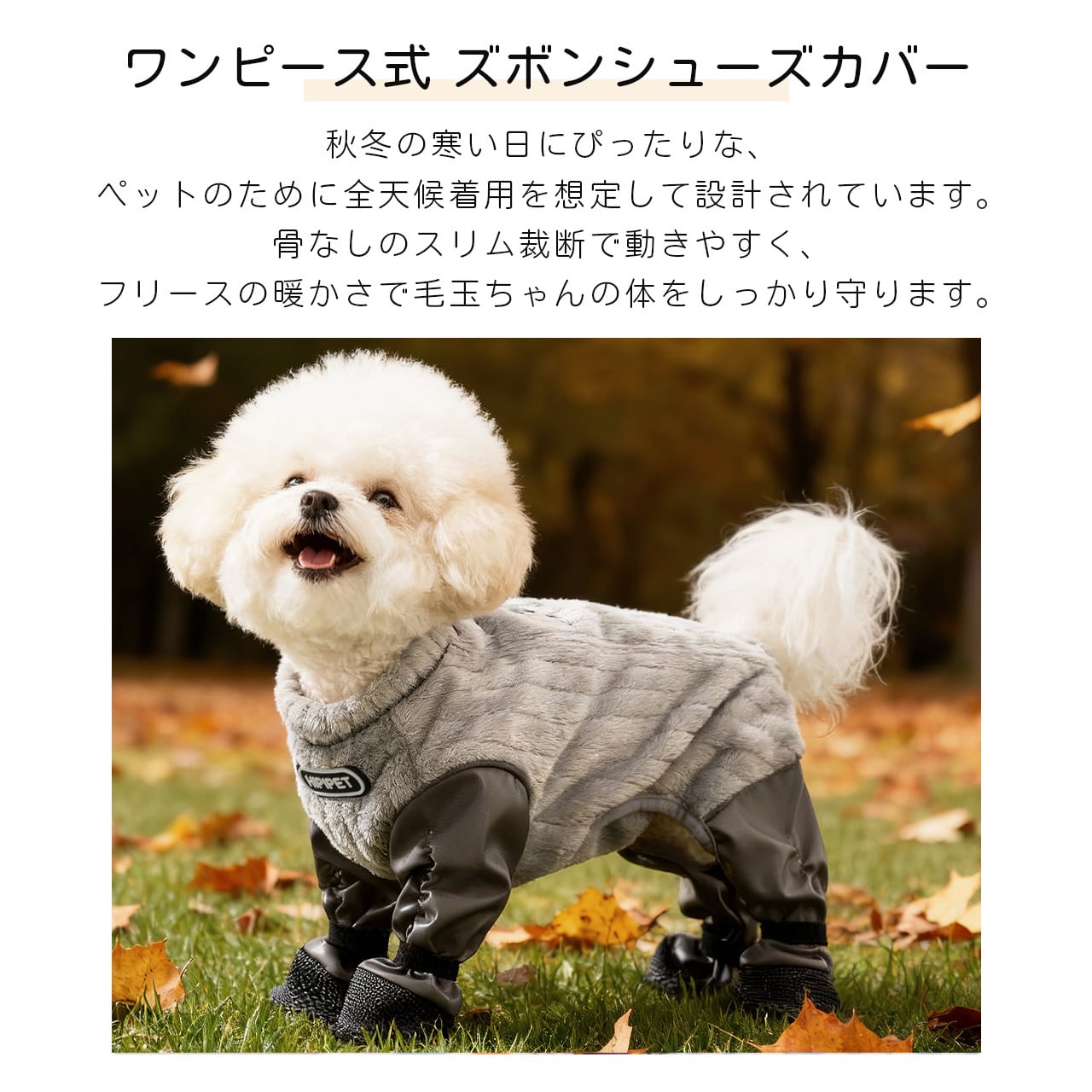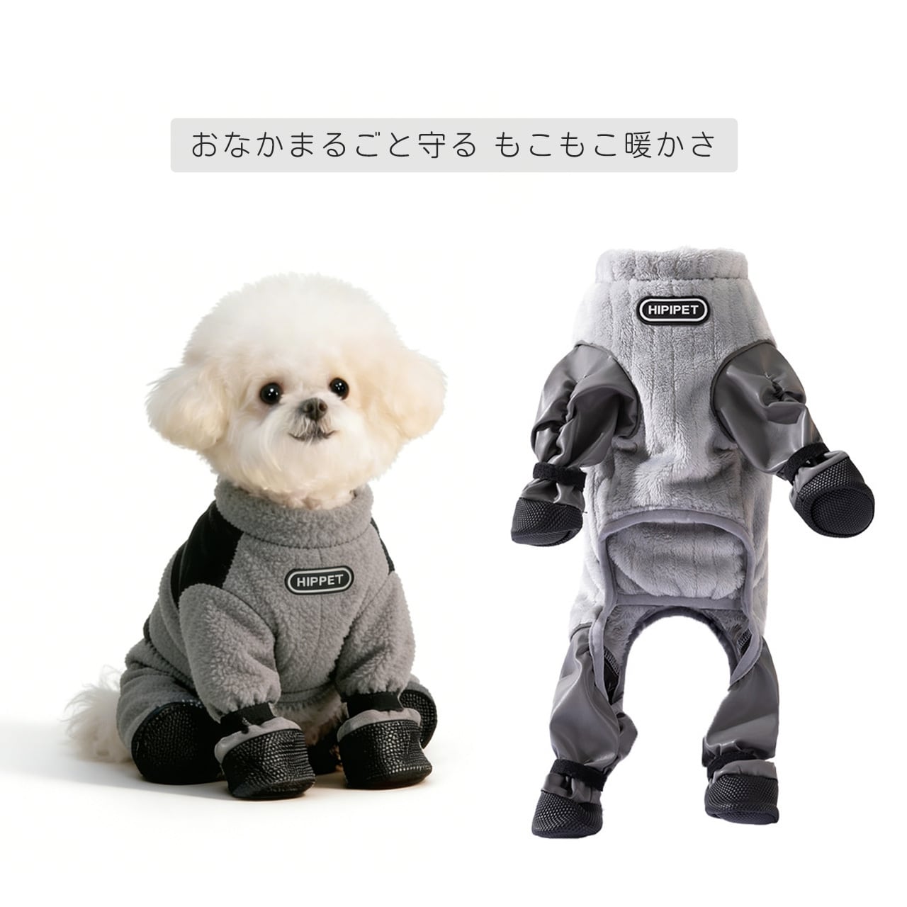 534 .おでかけ用小型犬冬服 保温腹巻きつなぎ足パンツ 防汚防水肘保護 泥汚れ防止防塵仕様