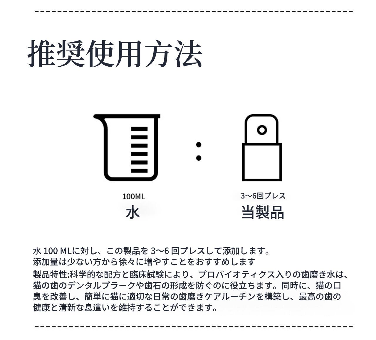 E 336 .ペット用プロバイオティクス入り歯磨き水 猫用のマウスウォッシュ、犬の口臭除去、口腔クリーニング、歯石対策にも役立ちます