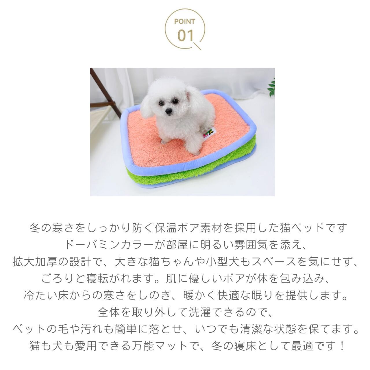 E 495 .猫ベッド 冬用ドーパミンカラー 保温ボア仕様 拡大加厚 ペットマット 犬猫両用 取り外し洗い可
