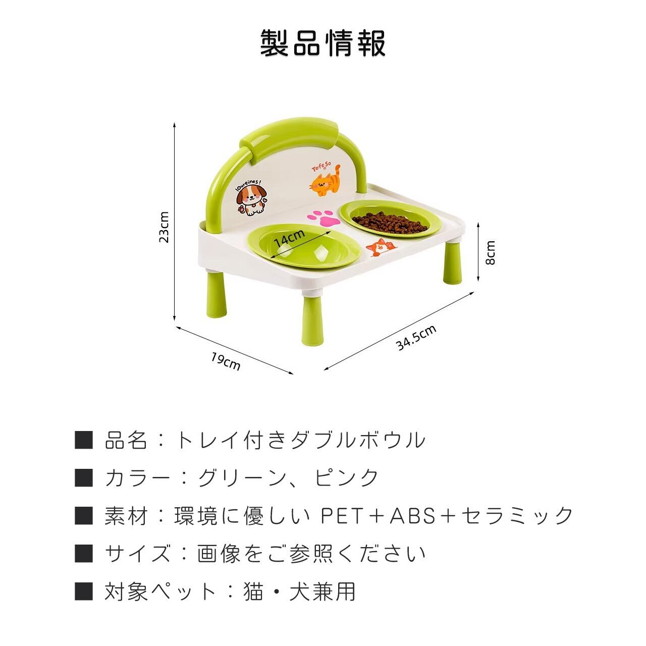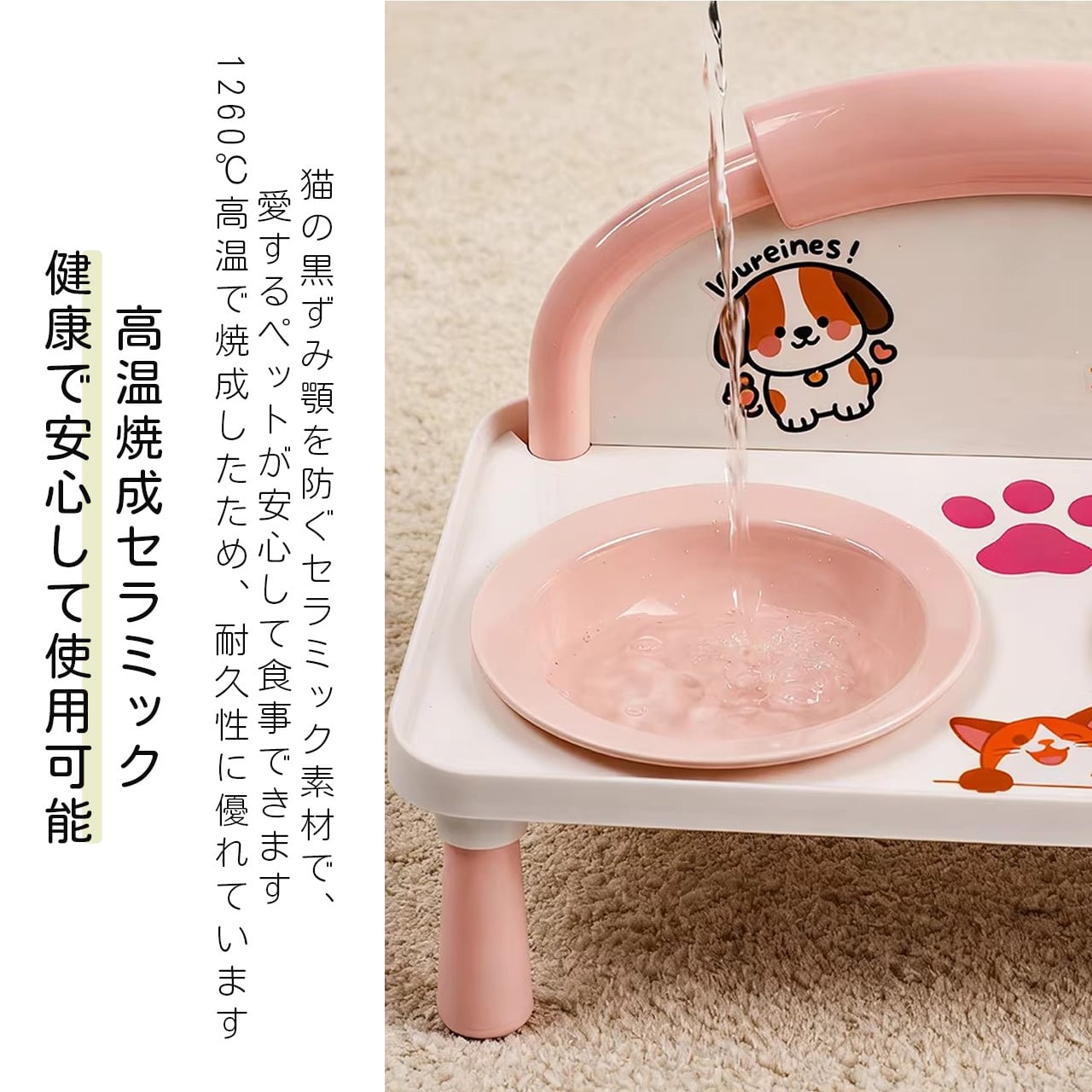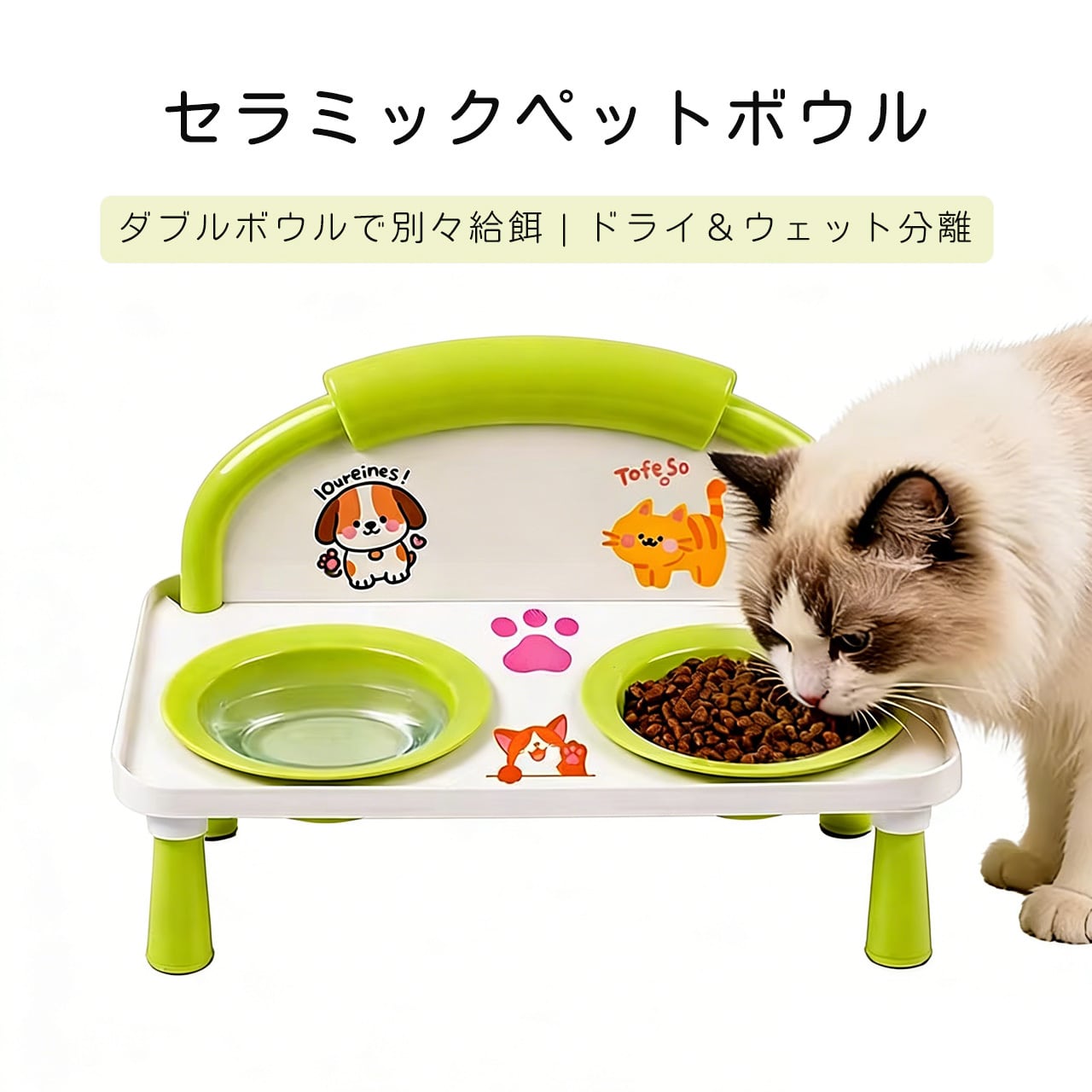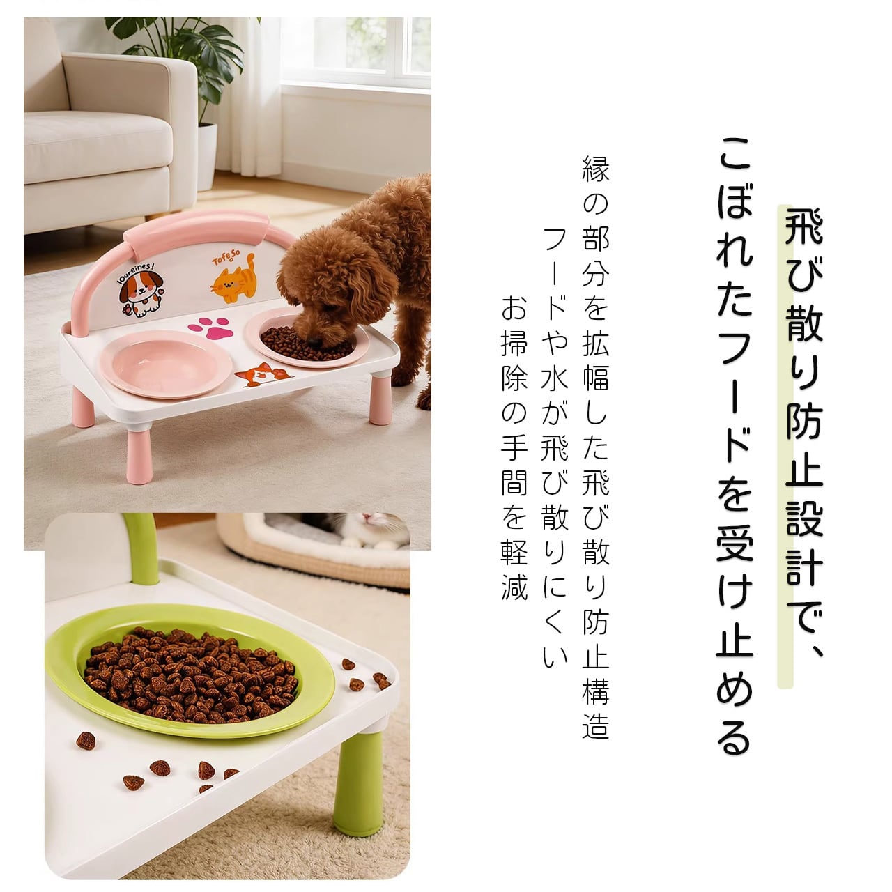 E 518 .ハイレッグ首保護 猫犬兼用ダブルボウル 給餌給水一体型 こぼれ防止