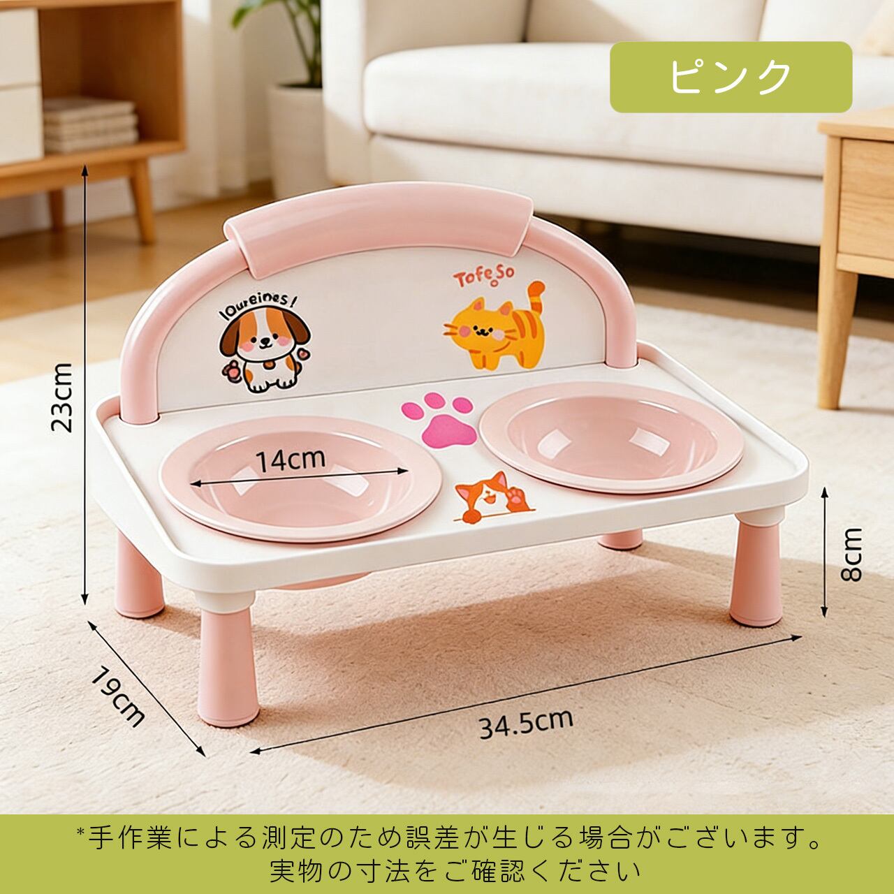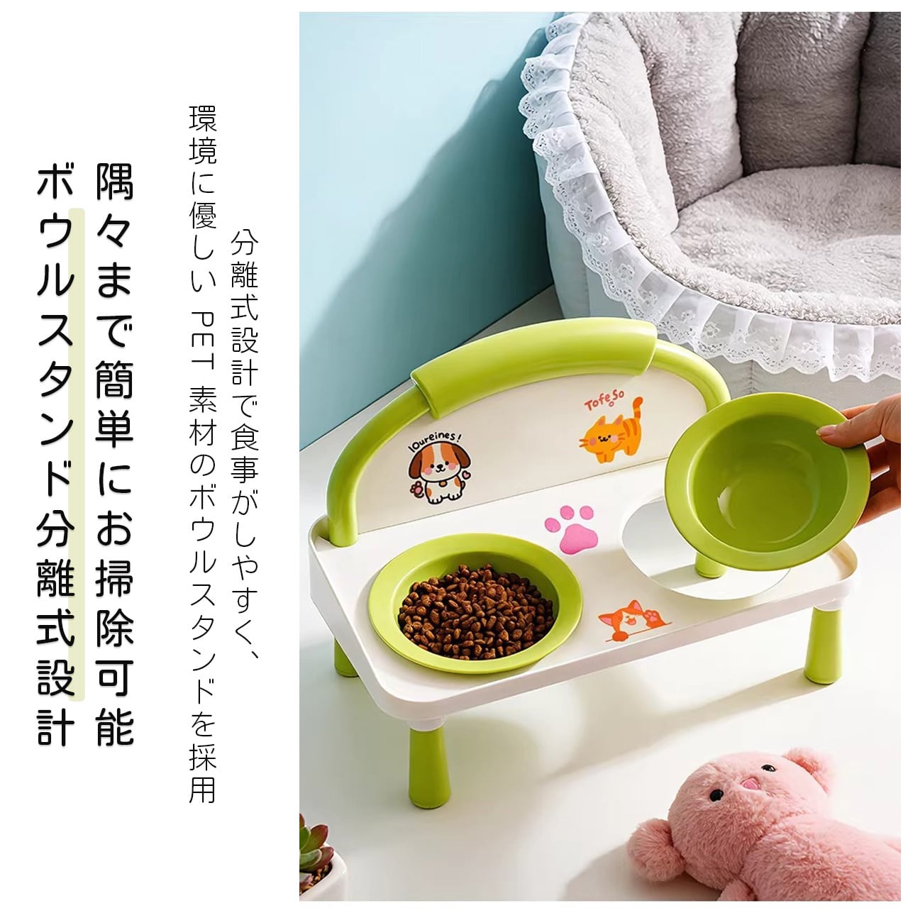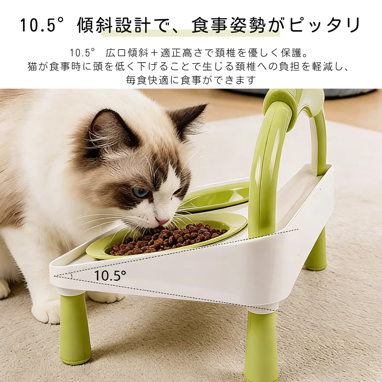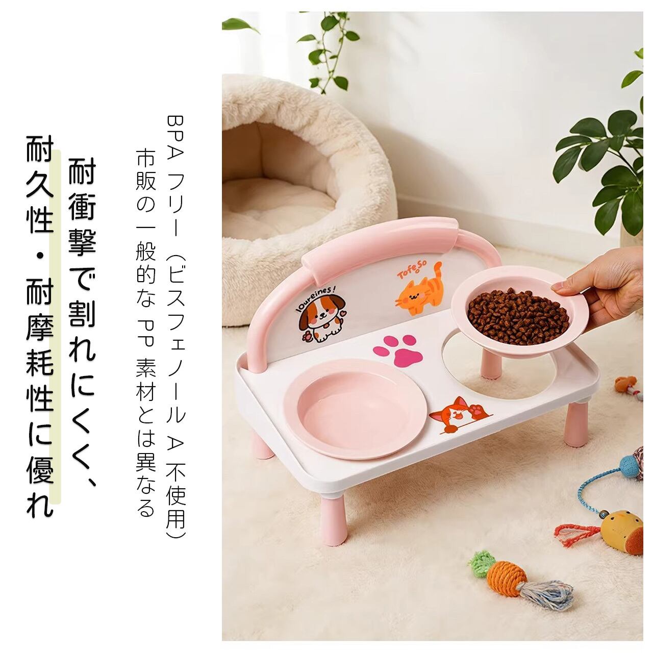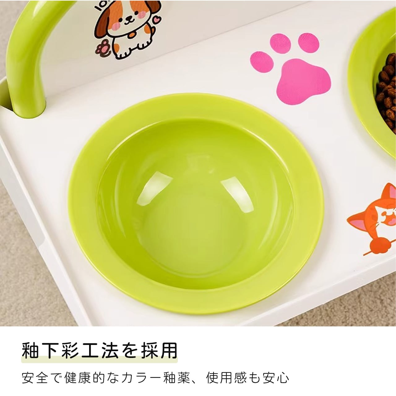 E 518 .ハイレッグ首保護 猫犬兼用ダブルボウル 給餌給水一体型 こぼれ防止