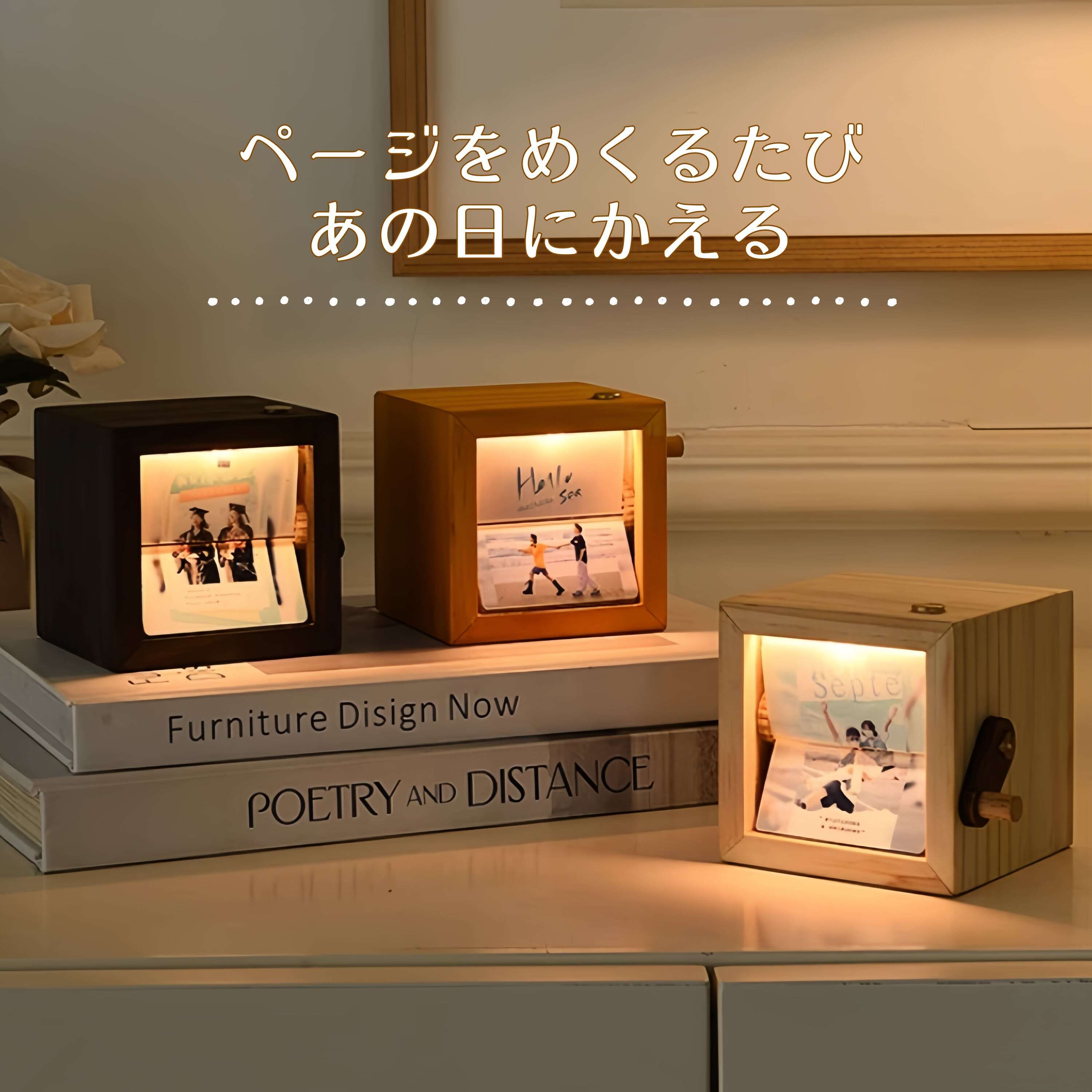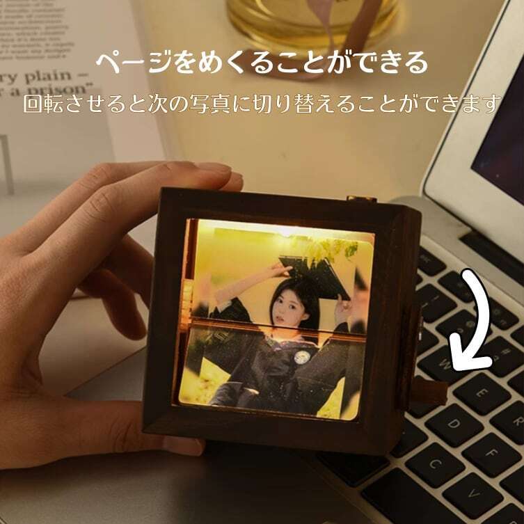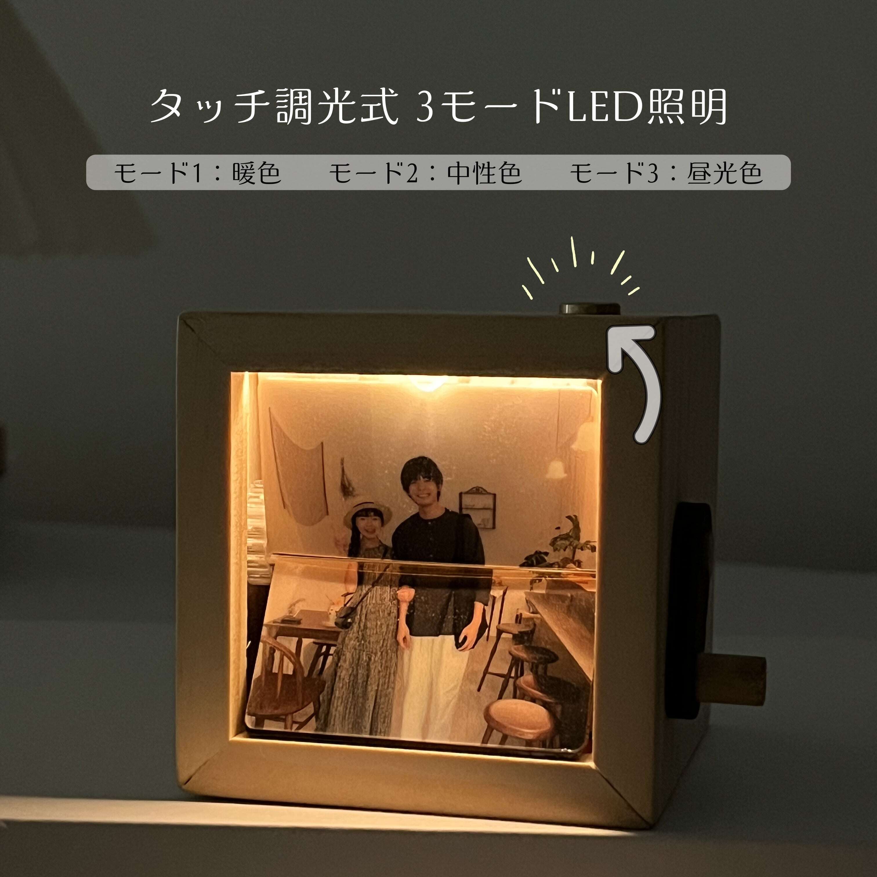 → スムーズなベアリング構造で軽く回転させて写真を切り替え可能。3段階の光色を自由に調整でき、思い出が光と共に流れます。