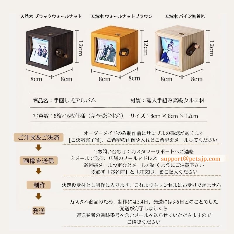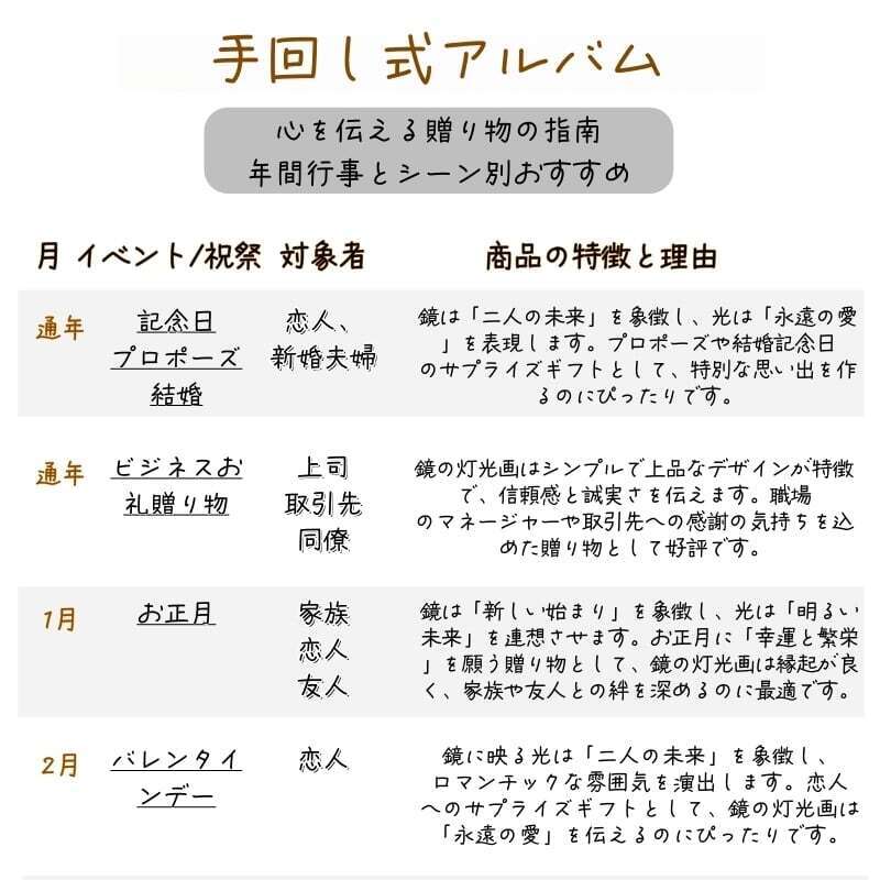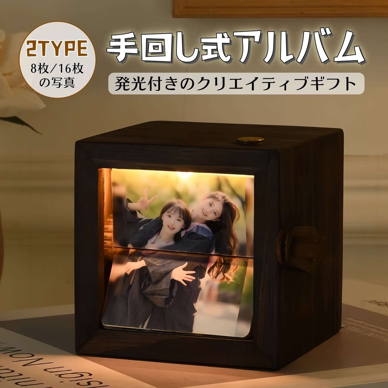 → 手動回転ライトアップアルバム:天然木のハンドクラフト+3色調光LEDライト+オーダーメイド写真。回転するたびに温かな思い出が光に照らされ、永遠に輝きます。