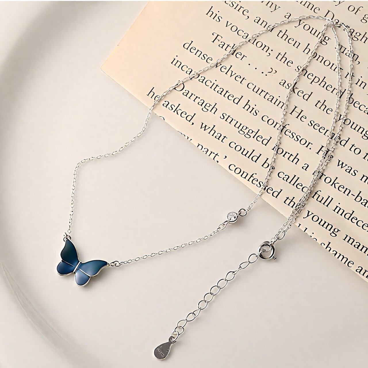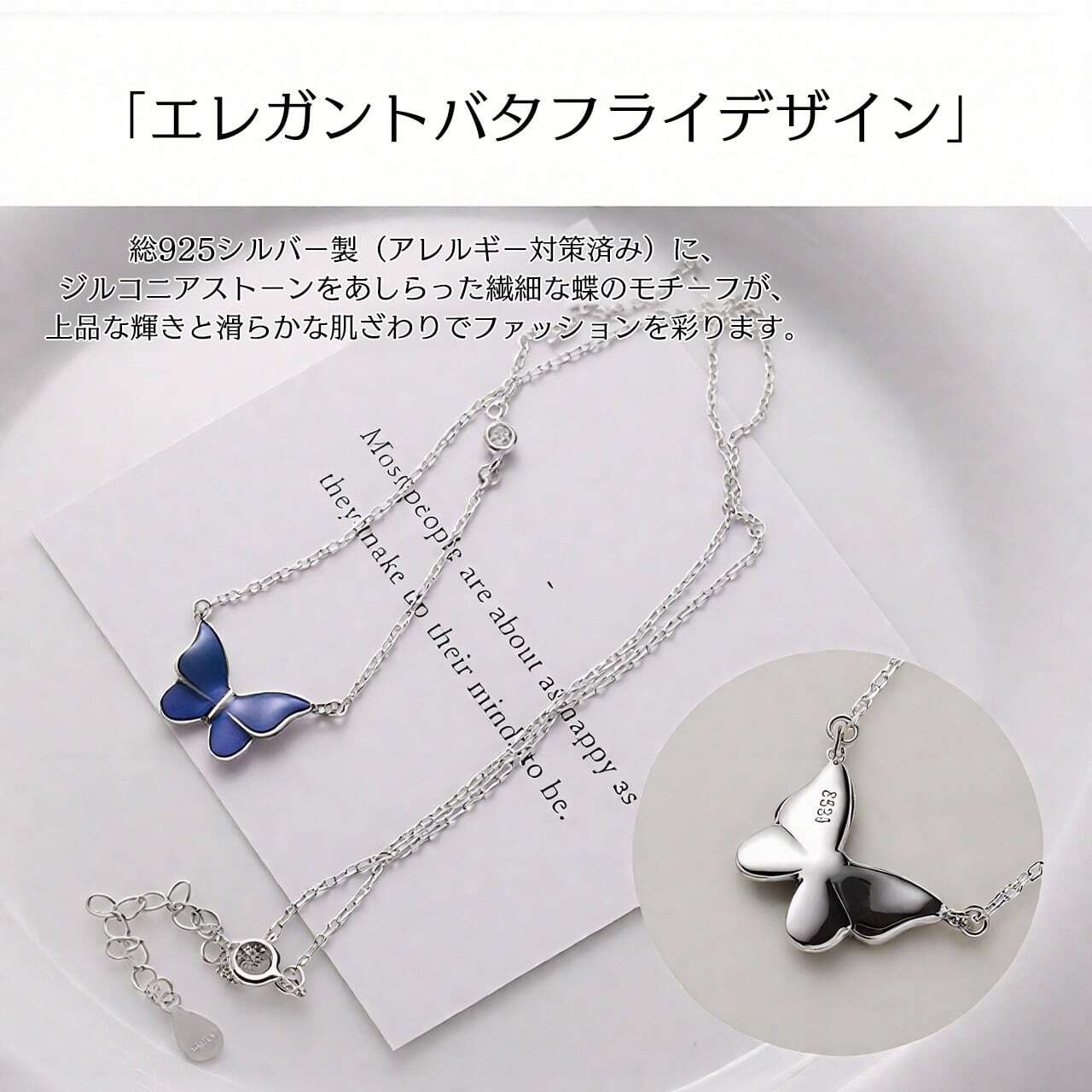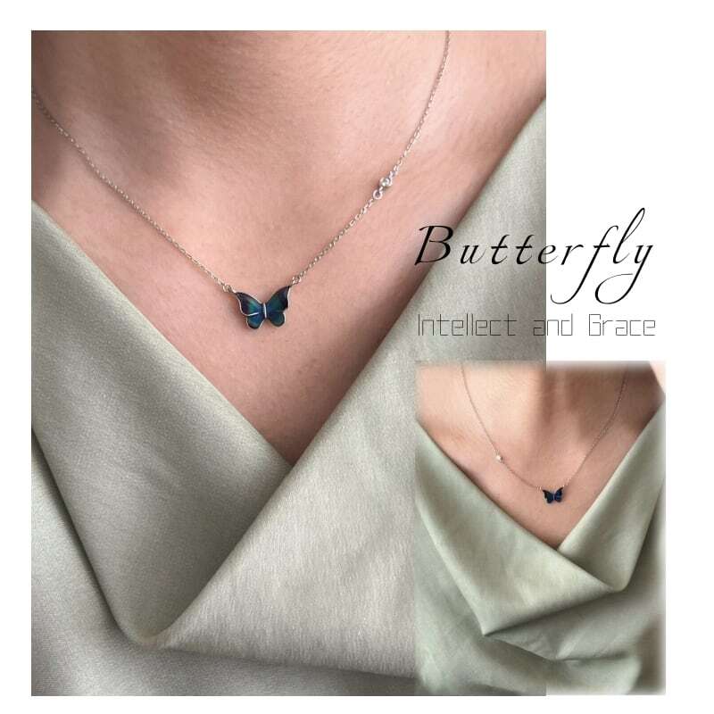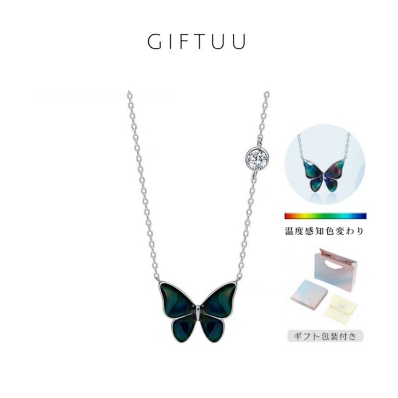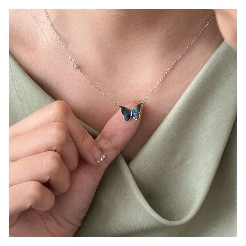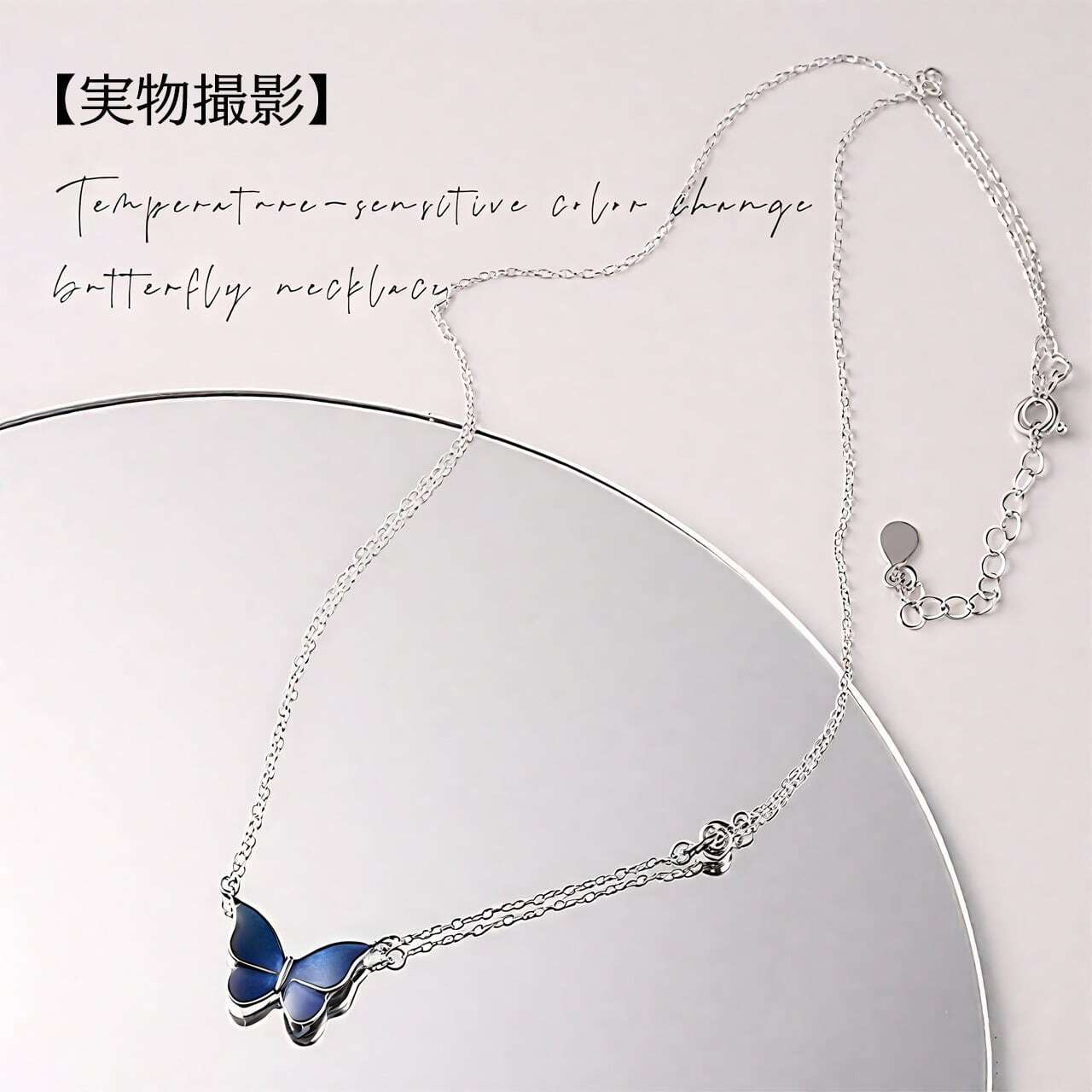 Y 108 . 1 体温で色が変わる魔法の蝶 バタフライネックレス 総925シルバー製 アレルギー対策済み