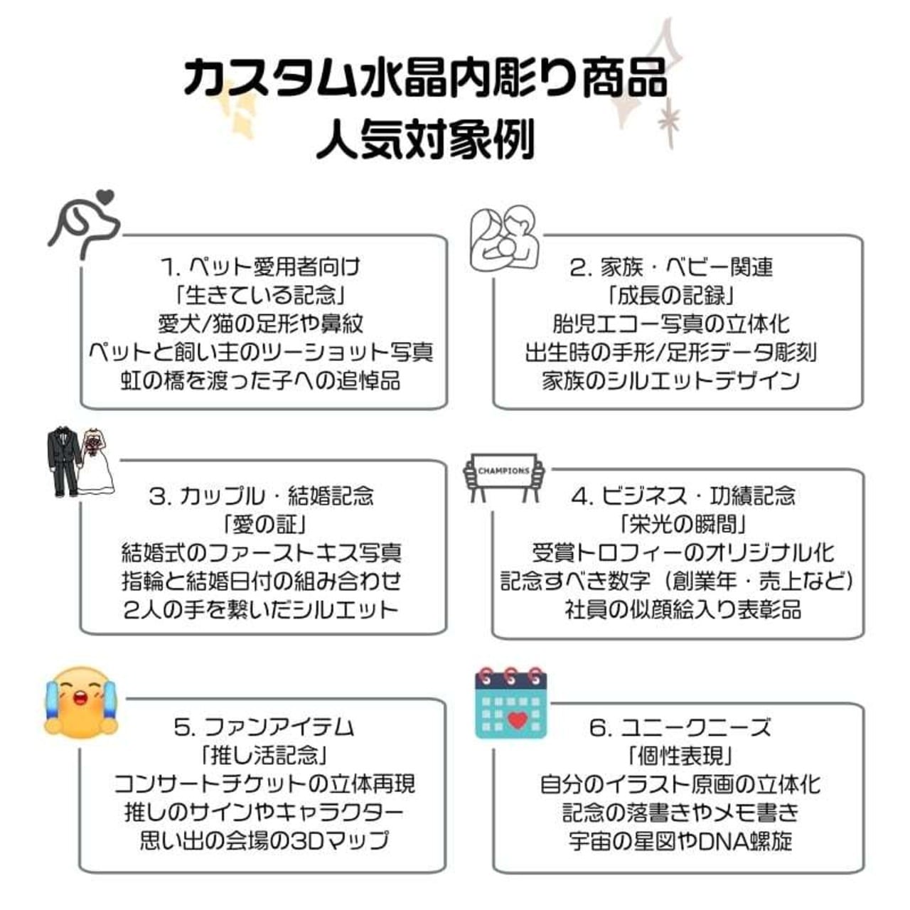 思い出の写真やメッセージを刻印することで、世界で唯一のオリジナルギフトを作成できます。