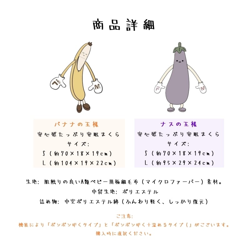 Sサイズ: ナス (約70×18×19cm) / バナナ (約70×18×19cm)