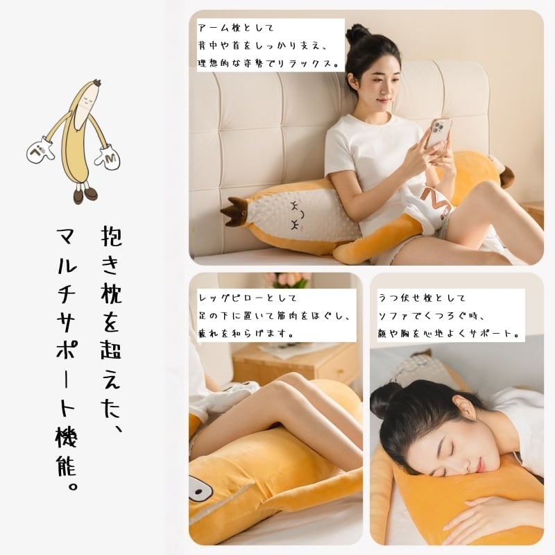 靠枕として背中・首をサポート、腿枕として足の疲れをほぐし、趴枕としてくつろぎの時間を演出。用途に合わせて形を変え、日常のあらゆるシーンで活躍します。