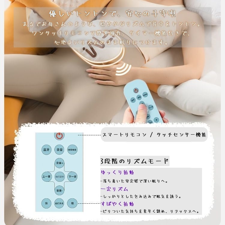 お気に入りの音楽や落ち語り、大切な人の声を録音再生可能。ワンタッチで再生し、あなただけの安眠BGMをお届けします。