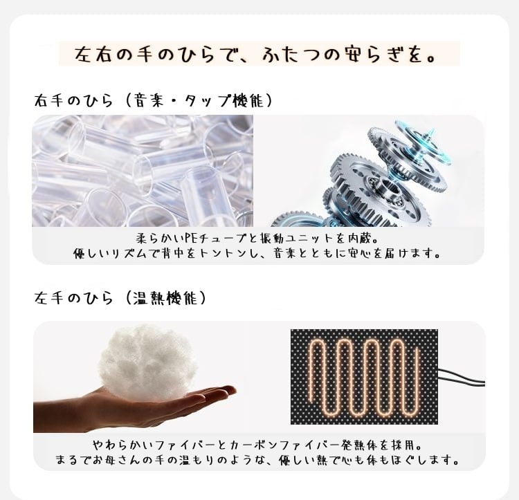 ⚠ 温熱機能は、就寝中の使用や長時間の連続使用は避け、適切な温度設定でお楽しみください。