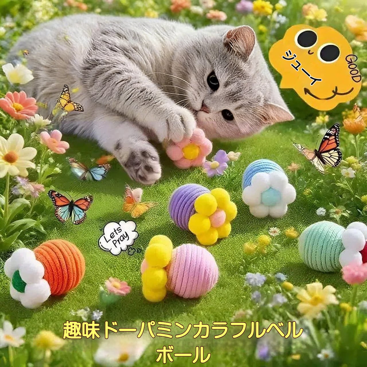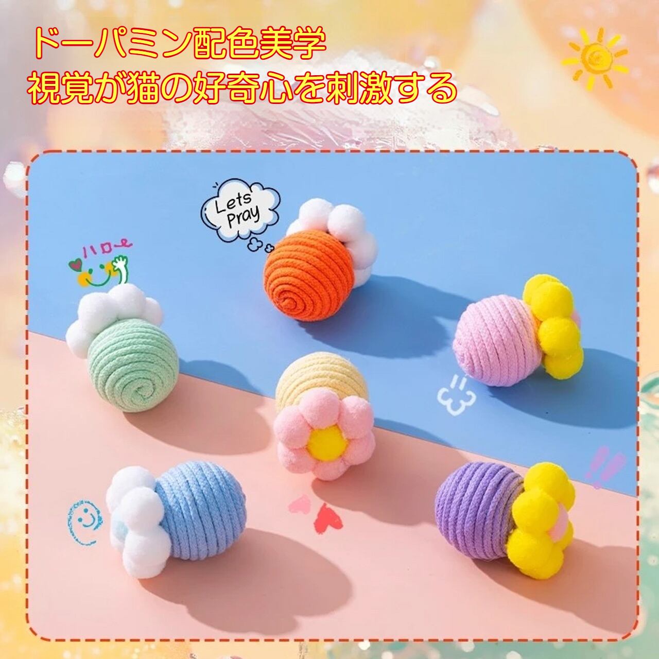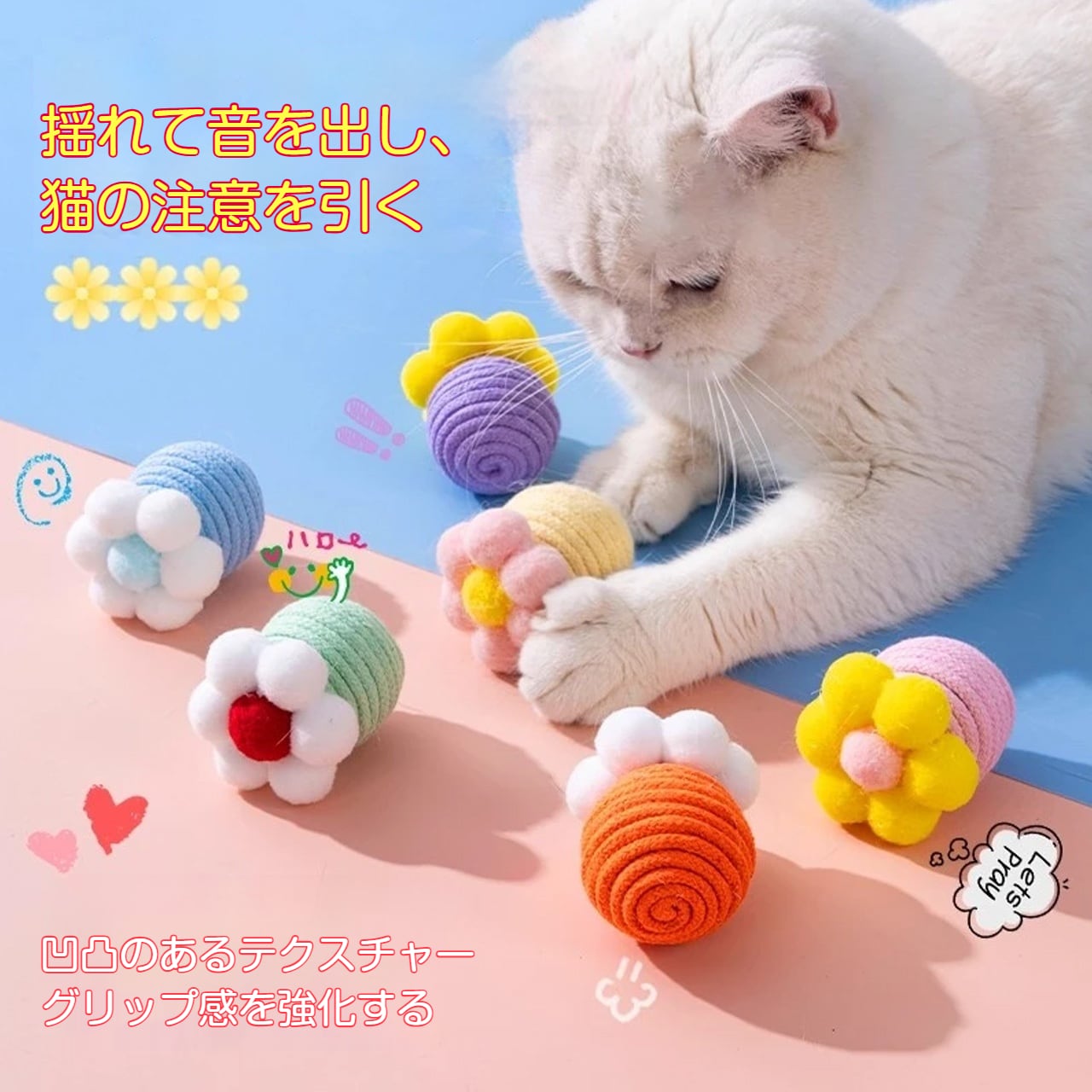 カラフルなコットンロープが視覚的に猫の興味を惹き、内蔵されたベルが転がるたびに爽やかな音を発して、単独でも長時間遊べる自嗨おもちゃです。