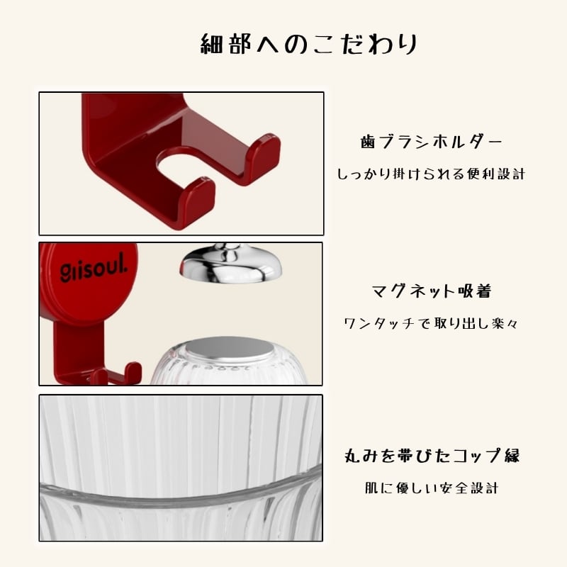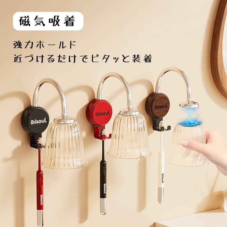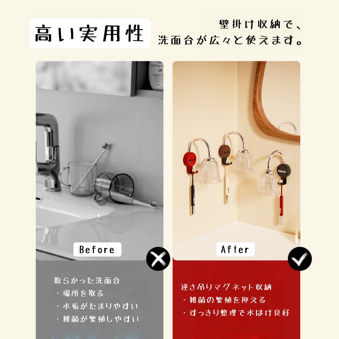 「磁気吸着 歯ブラシ・コップスタンド」は、強力マグネットと逆さ吊り設計で、使いやすさと清潔さを両立。