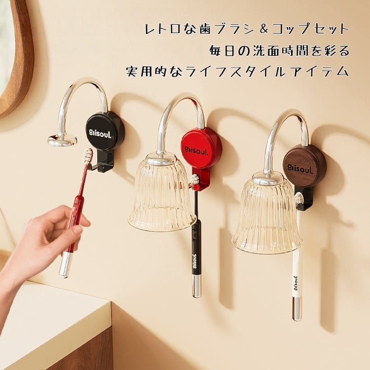 品名: レトロデザイン 磁気吸着歯ブラシ・コップスタンド