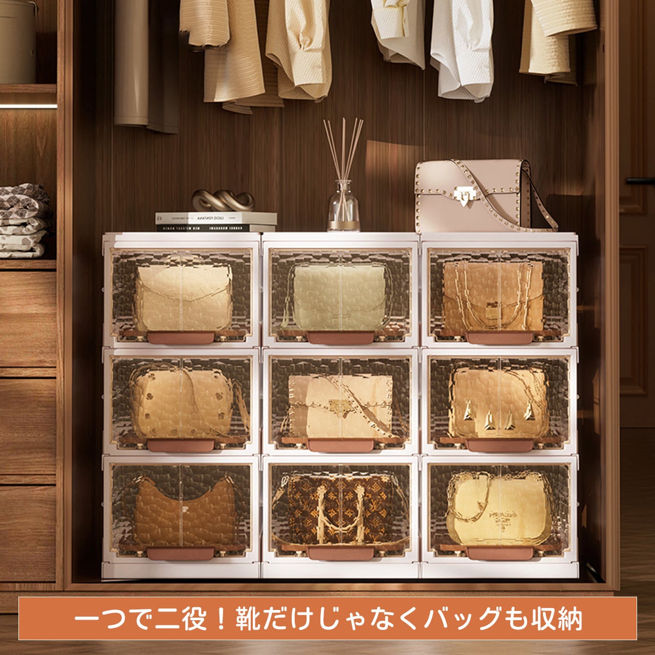 本体は厚手PP素材を採用,耐衝撃性に優れ、靴の重量に耐えられるだけでなく、子供がぶつかっても破損しにくい設計です。底部は防滑加工を施し、重ねて使用しても安定性が高く、倒れにくく安全です。