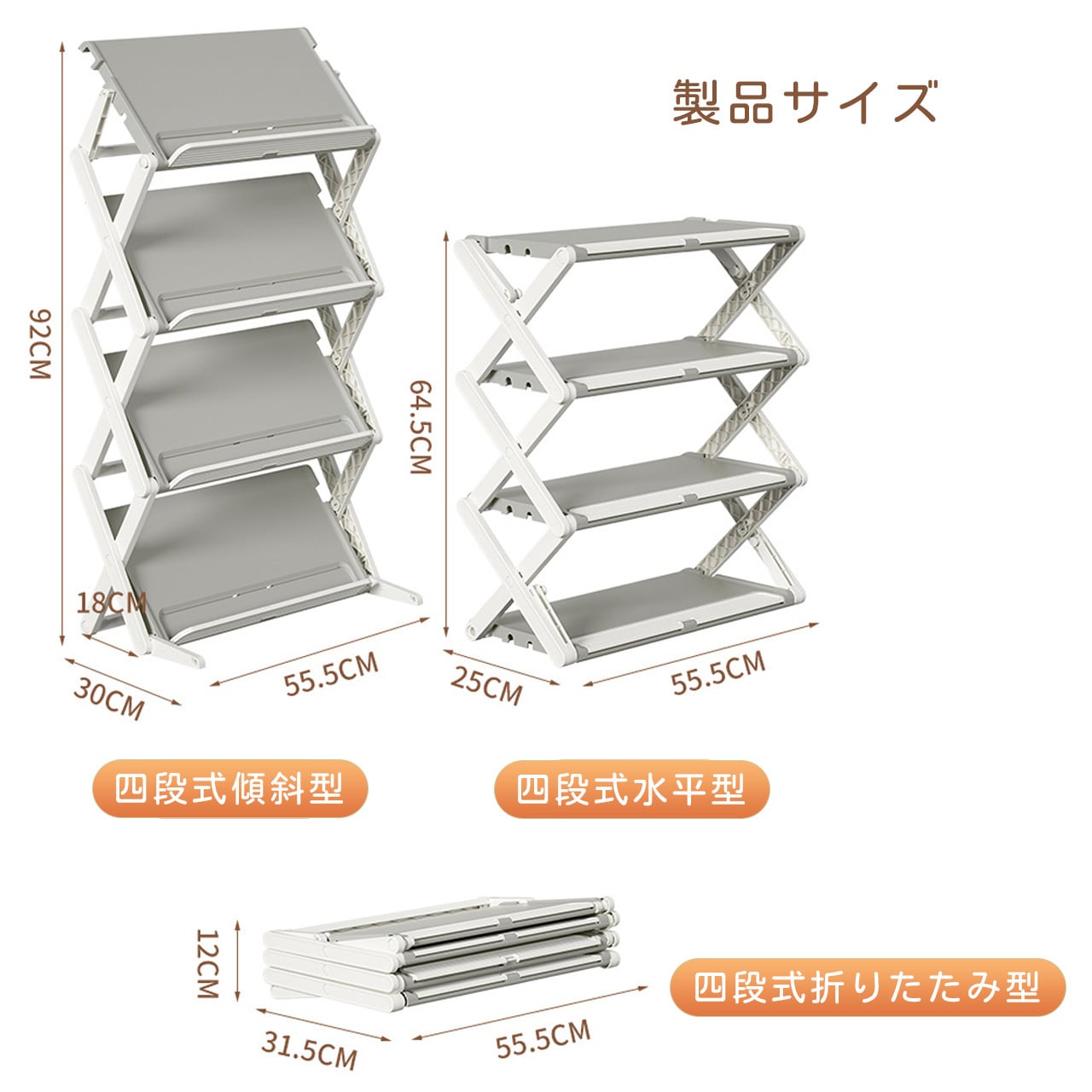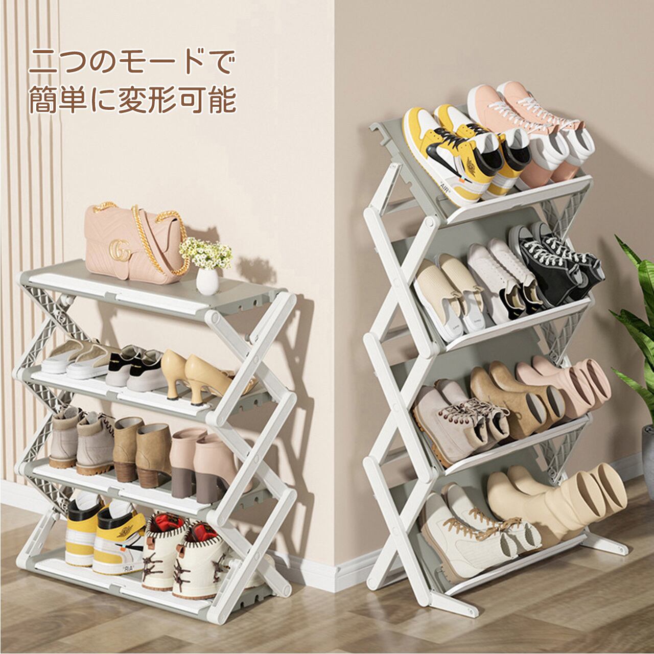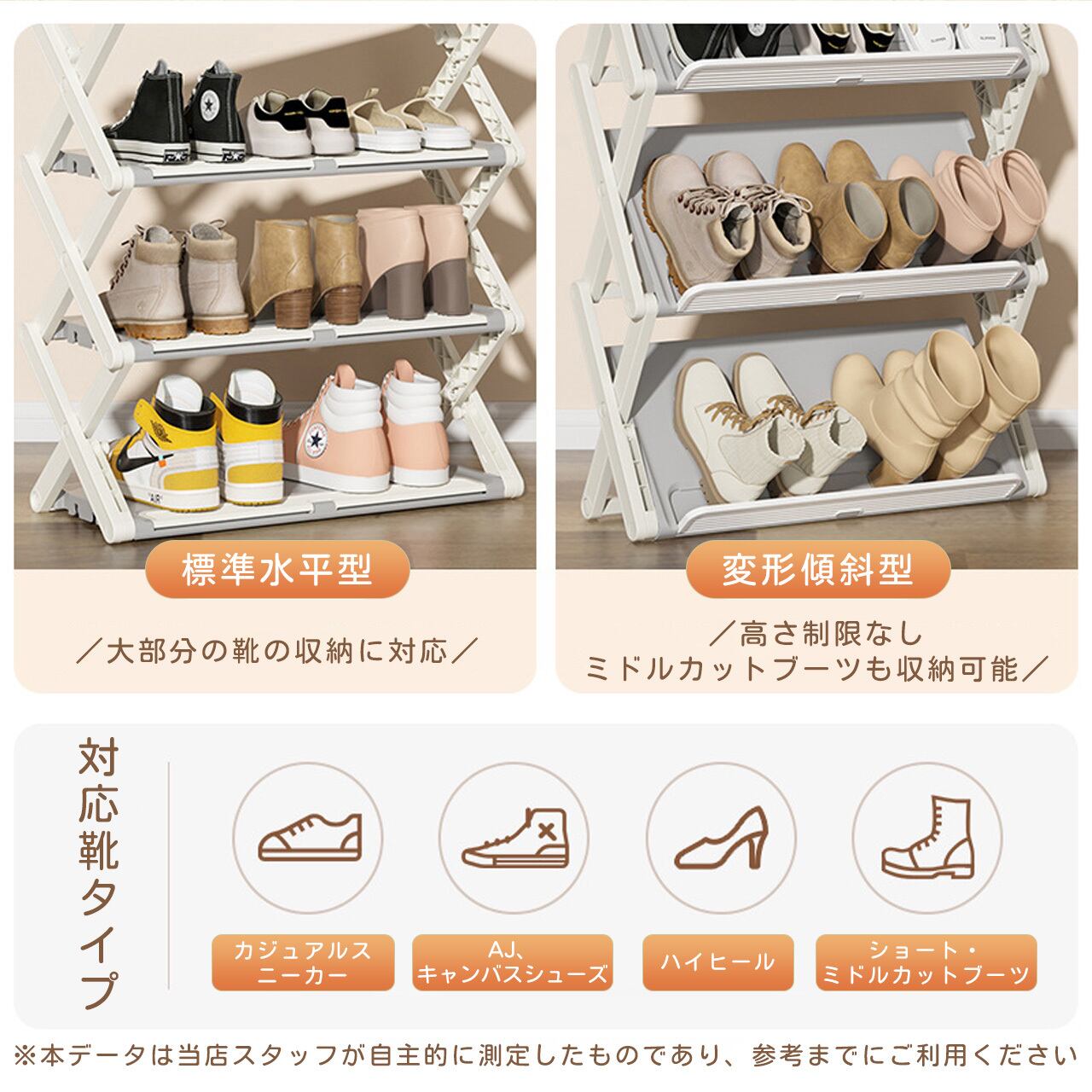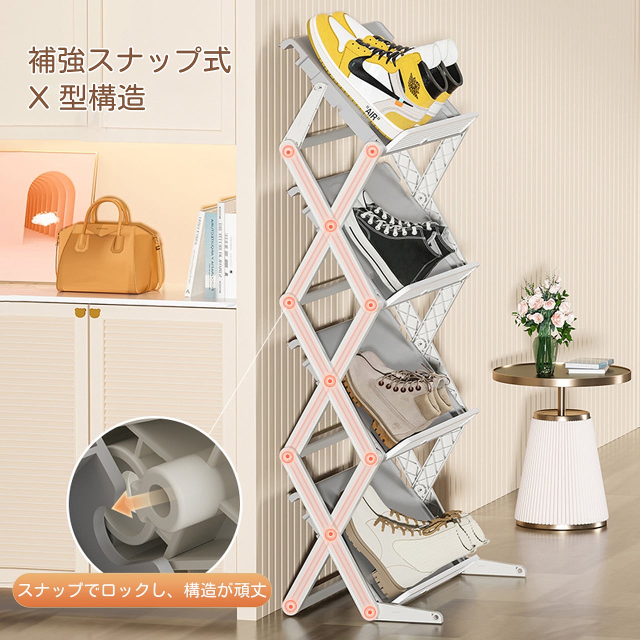 多層収納棚で靴を整然と並べられ、ショートブーツ・スニーカー・ハイヒールなど、様々な靴タイプに対応。不用時は薄く折りたためて、クローゼットの隙間やベッドの下にも収納可能。