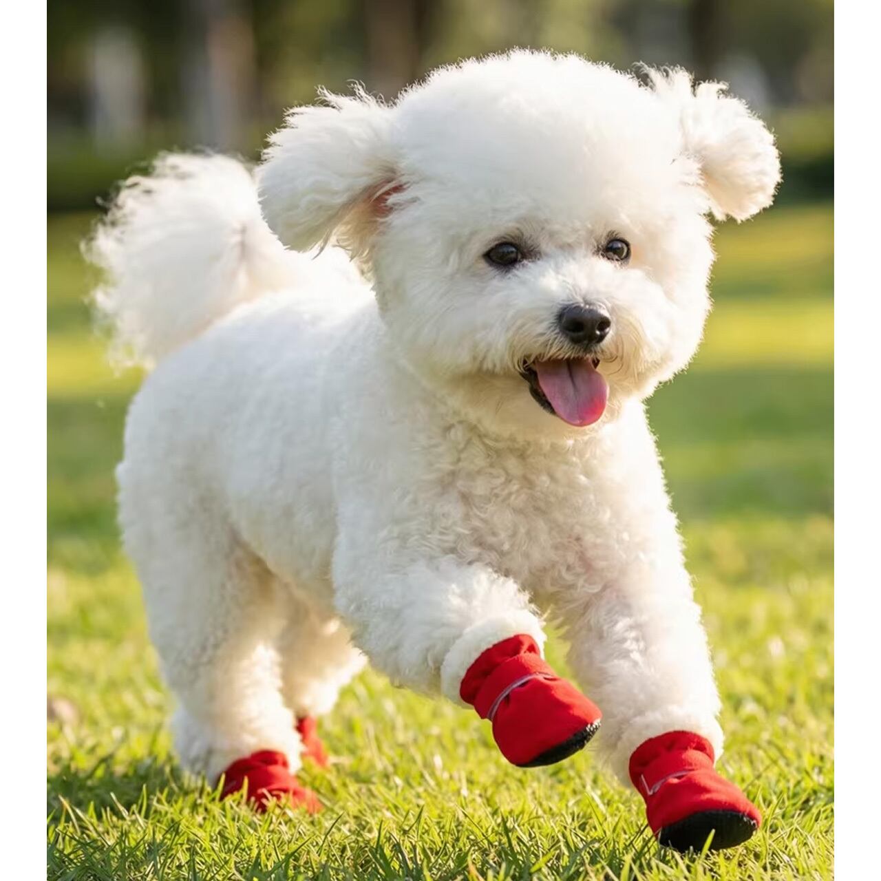 靴の開口部には調整可能なマジックテープを採用し、愛犬の足のサイズに合わせて締め具合を調整できます。軽量な素材で愛犬の足に負担をかけず、走ったり跳ねたりしても脱げることがありません。靴の形状は犬の足の構造に合わせて設計されており、長時間着用しても不快感を与えません。