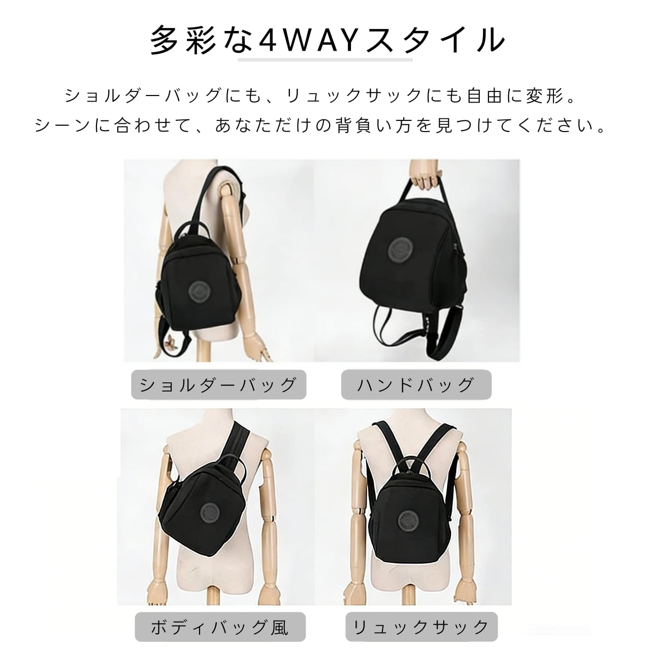 一つのバッグで、「ショルダーバッグ」「ハンドバッグ」「ボディバッグ」「リュックサック」の4通りのスタイルに自由に変形。シーンや服装、気分に合わせて、あなただけの使い方を発見できます。