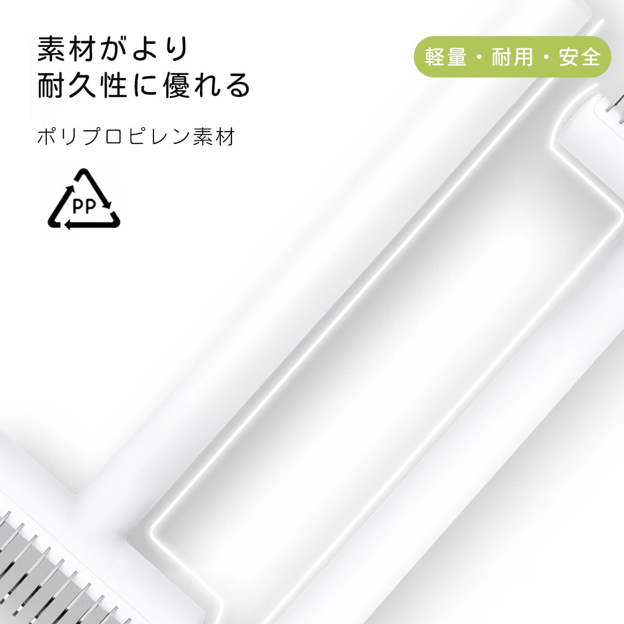軽量で持ちやすい PP 樹脂ハンドルは長時間の梳毛でも疲れず、猫犬両用で長毛 / 直毛 / 順毛の様々な毛質に対応,家庭での日常毛ケアや換毛期の集中除毛に大活躍する実用的アイテムです。