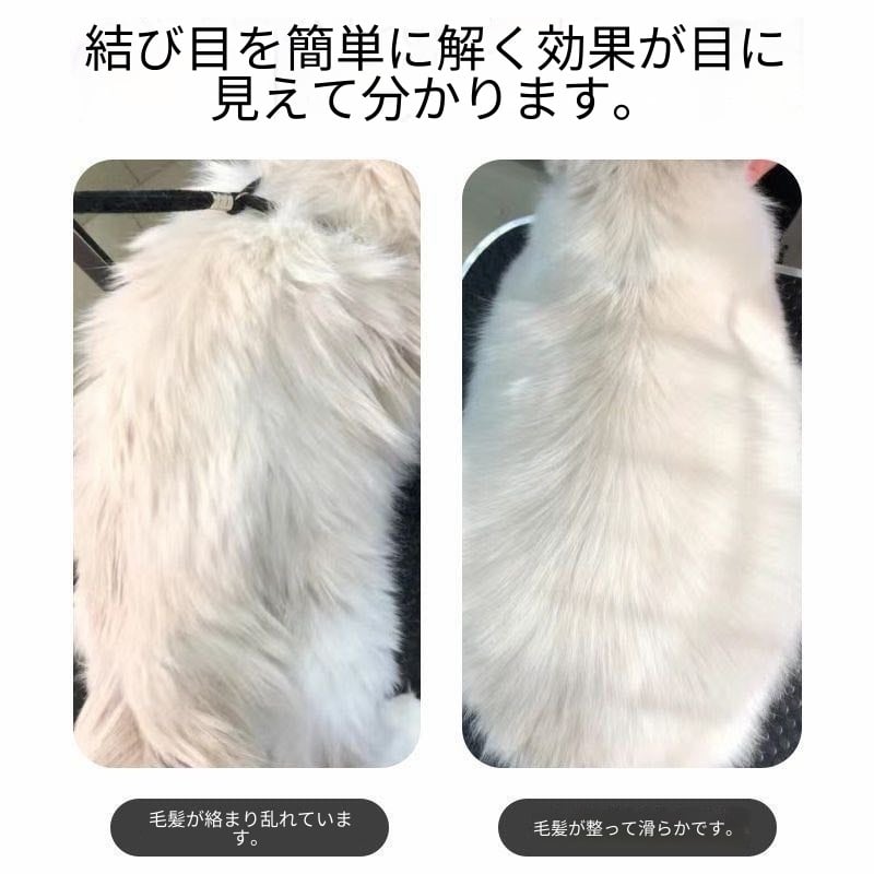 1. 梳毛の注意:毛が重度にもつれた部分は、無理に梳かず指でほぐした後に使用してください。無理な力で梳くと毛抜けや皮膚の損傷を引き起こします。