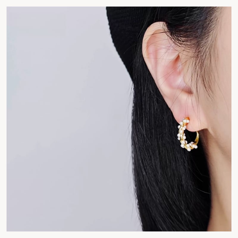 フレンチテイストの立体的なC型フォルムに、繊細なパールをあしらったイヤーカフタイプの耳飾り。
