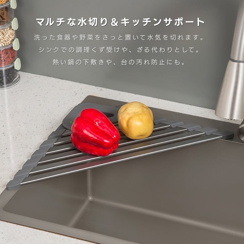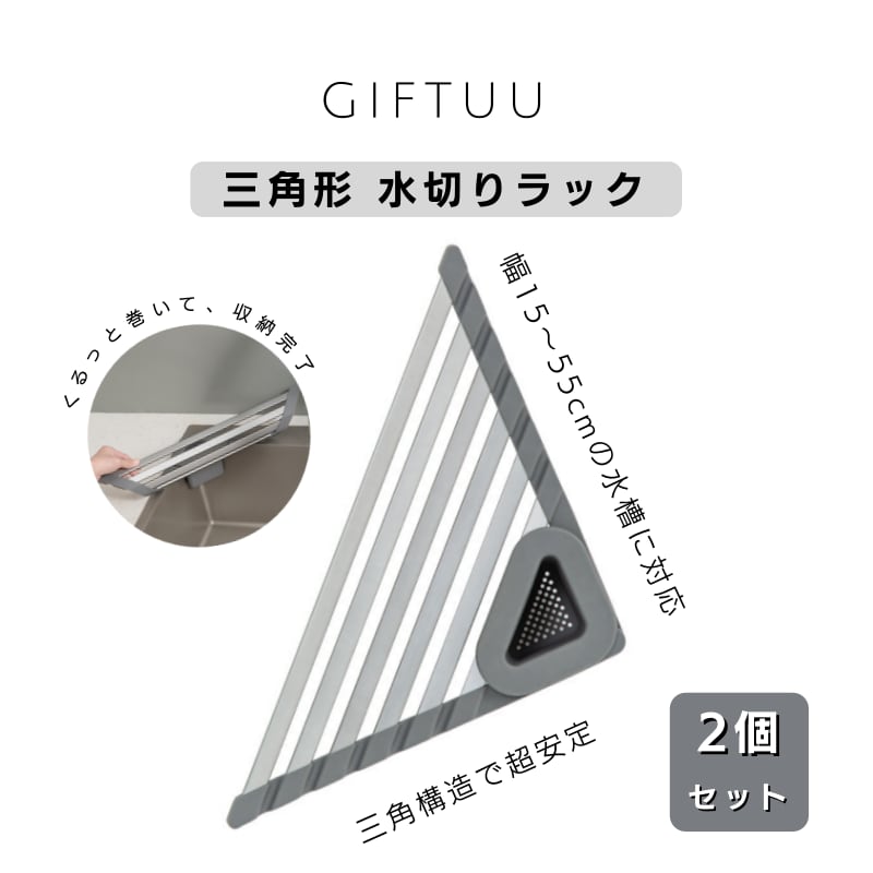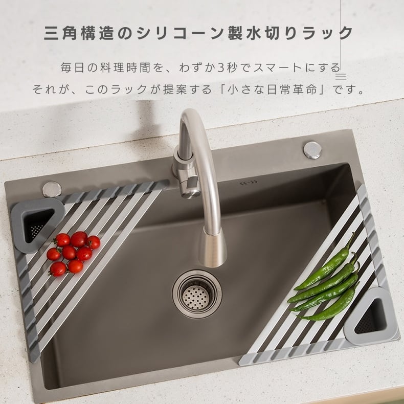 三角形状が「水切り+作業面+収納」を1台で実現し、